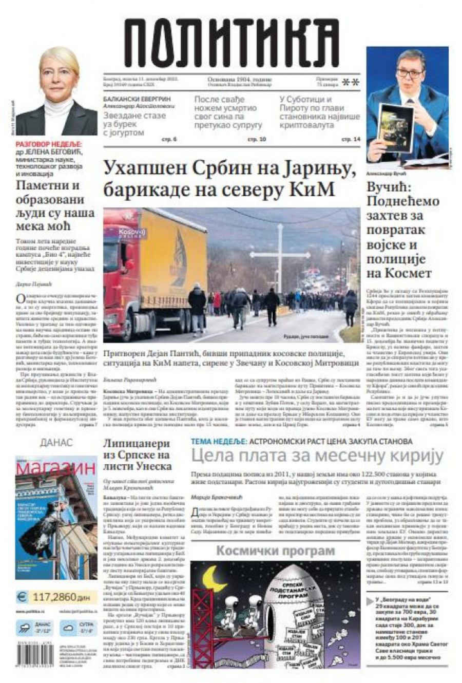 Dnevne novine u Srbiji za nedelju 11. decembar 2022. godine na naslovnim stranama najavljuju brojne aktuelne društveno-političke teme i donose ekskluzivne priče.