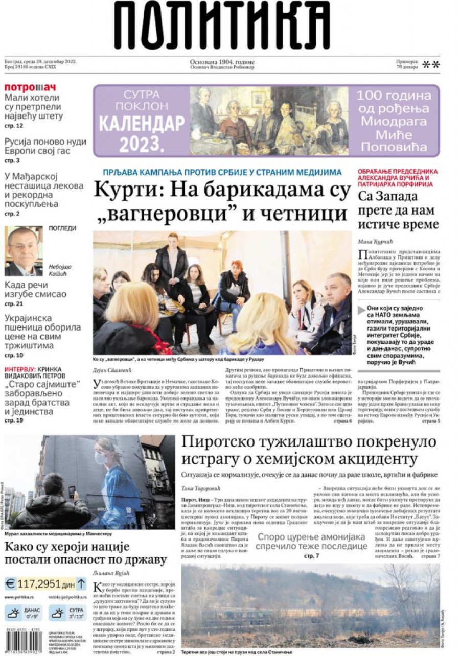 Prelistavanje štampe za sredu 28. decembar 2022. godine