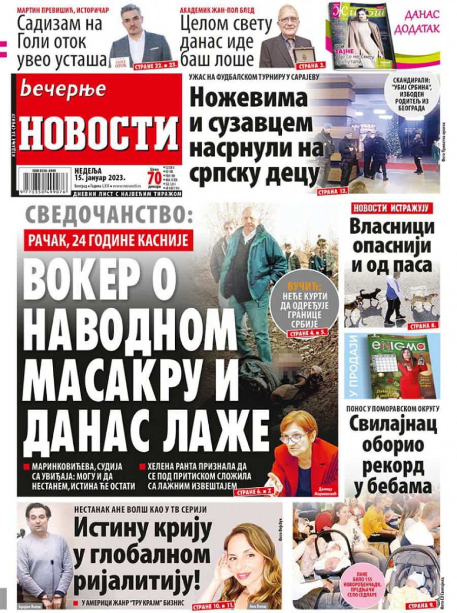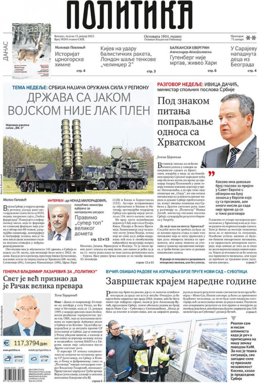 Prelistavanje štampe za nedelju 15. januar 2023. godine