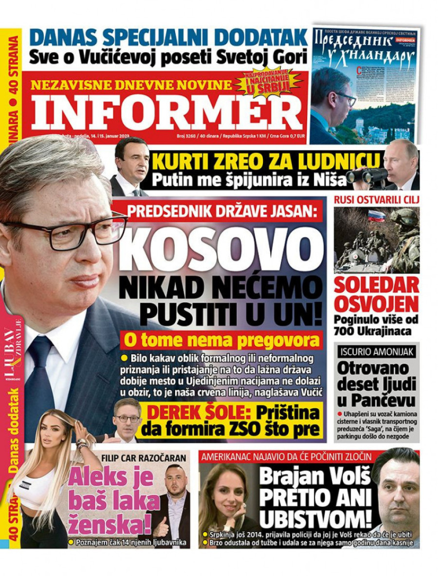 Dnevne novine u Srbiji za nedelju 15. januar 2023. godine na naslovnim stranama najavljuju brojne aktuelne društveno-političke teme i donose ekskluzivne priče.