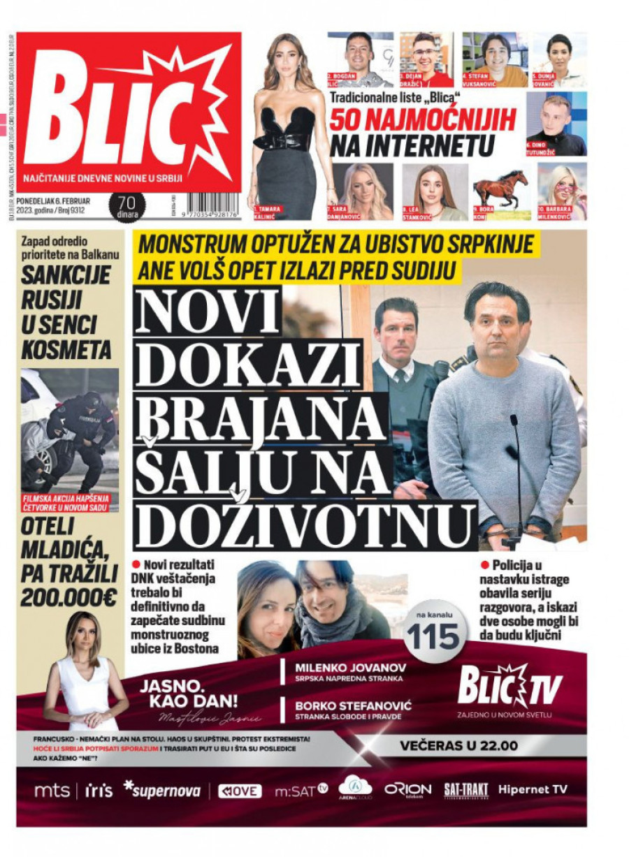 Naslovne strane sutrašnjih novina: Prelistavanje štampe za 6. februar 2023. godine