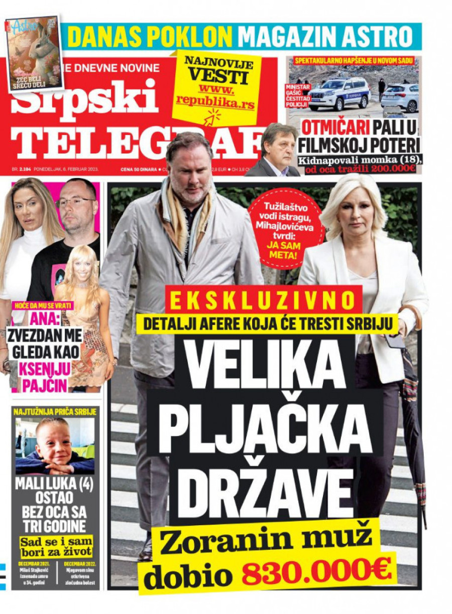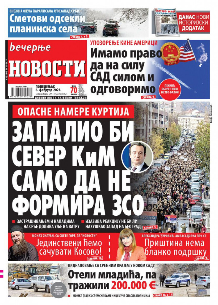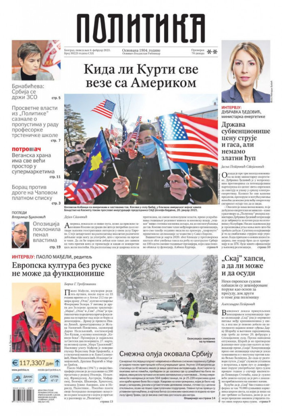 Dnevne novine u Srbiji za ponedeljak 6. februar 2023. godine na naslovnim stranama najavljuju brojne aktuelne društveno-političke teme i donose ekskluzivne priče.