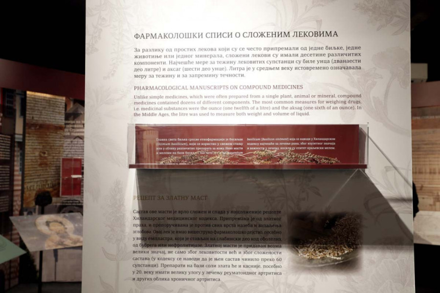 U muzeju je izloženo fototipsko izdanje Hilandarskog medicinskog kodeksa, ali to nije najstarija medicinska knjiga u Srbiji. Zapravo, stariji je Hodoški kodeks, koji ima oko 90 recepata, a čuva se u praškom muzeju.