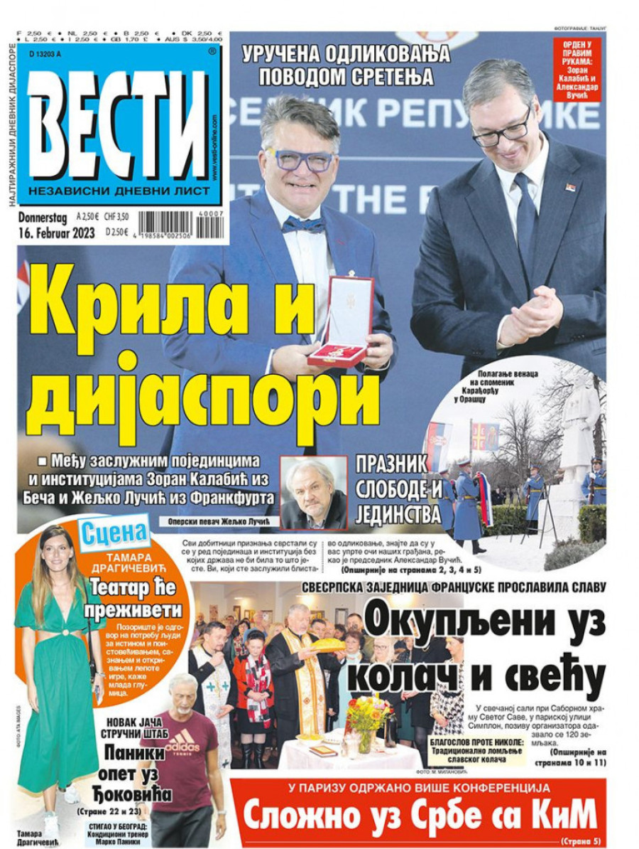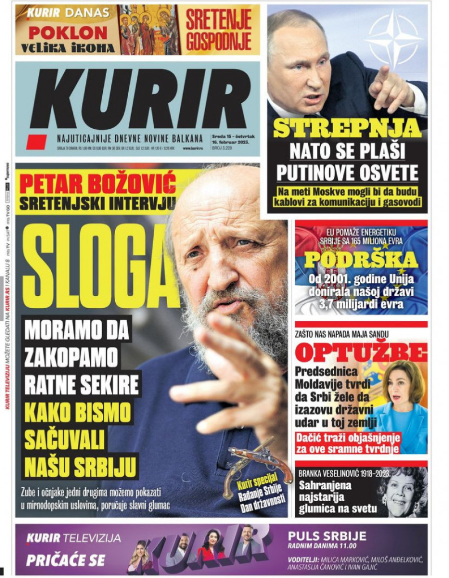 Dnevne novine u Srbiji za četvrtak 16. februar 2023. godine na naslovnim stranama najavljuju brojne aktuelne društveno-političke teme i donose ekskluzivne priče.