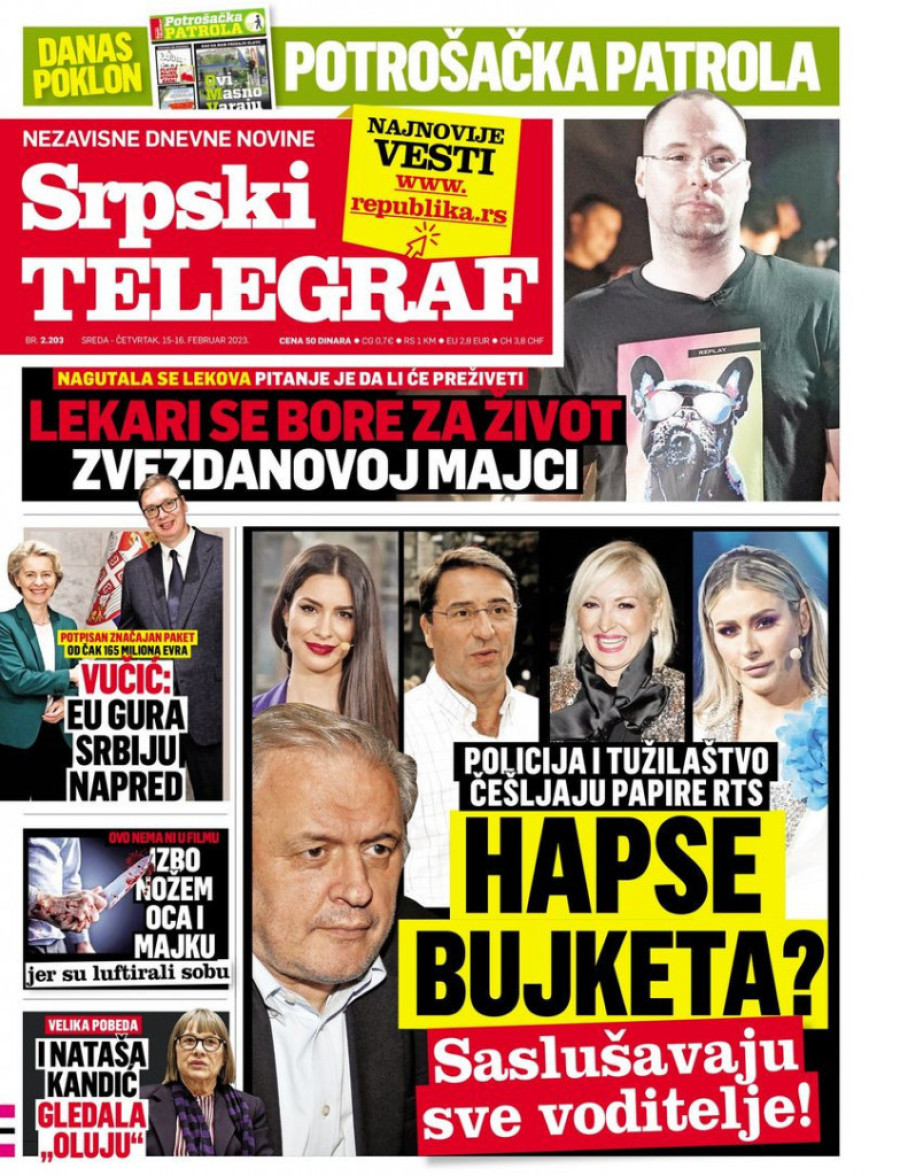 Naslovne strane sutrašnjih novina: Prelistavanje štampe za 16. februar 2023. godine