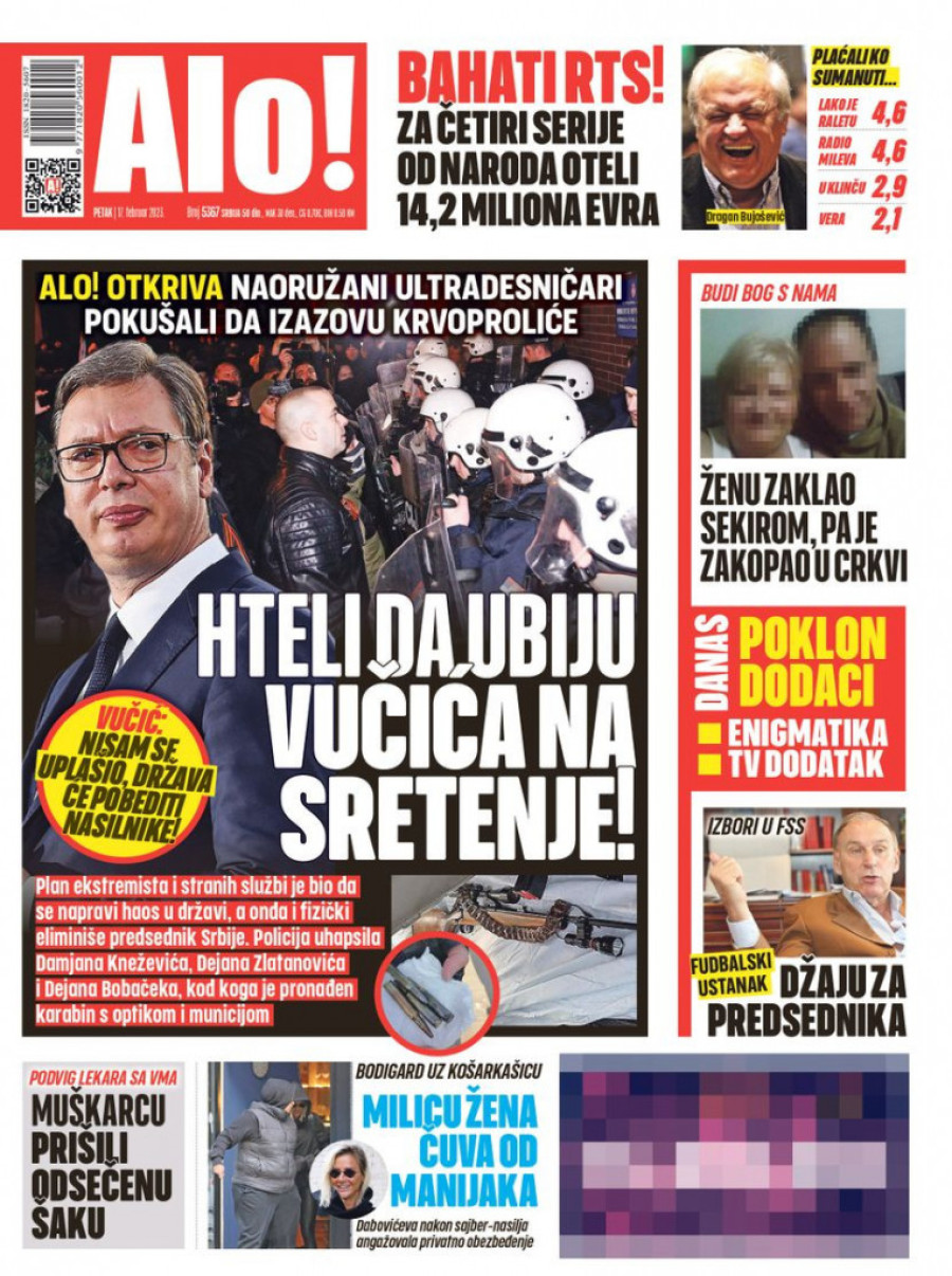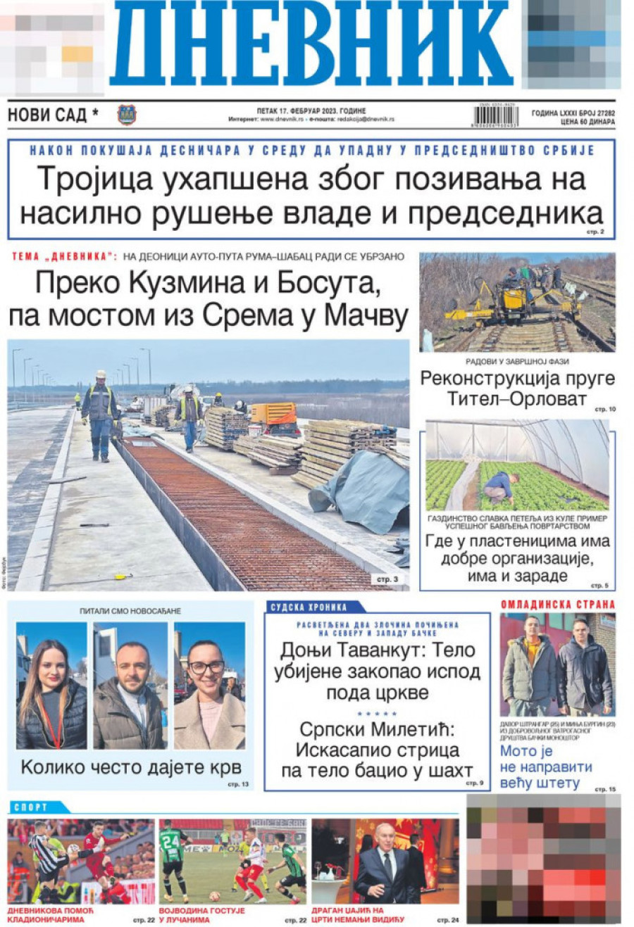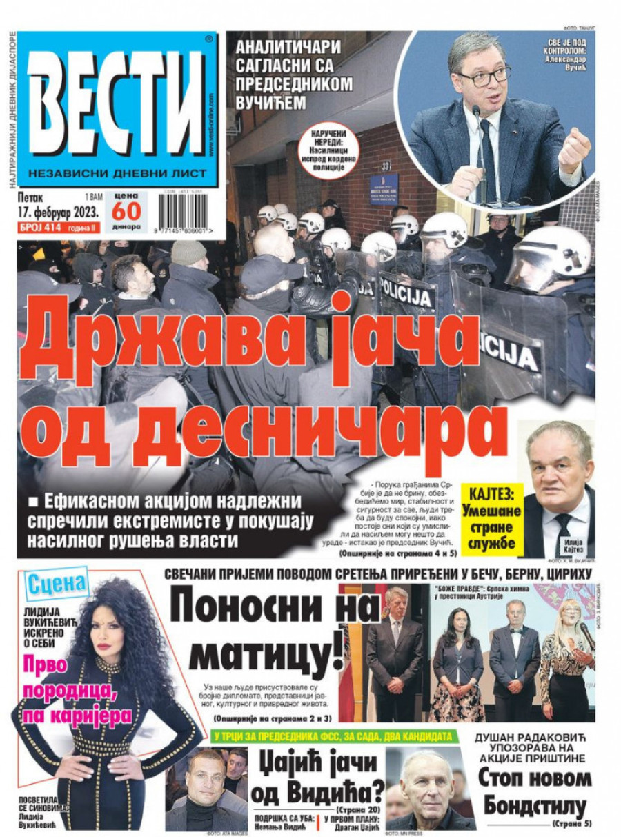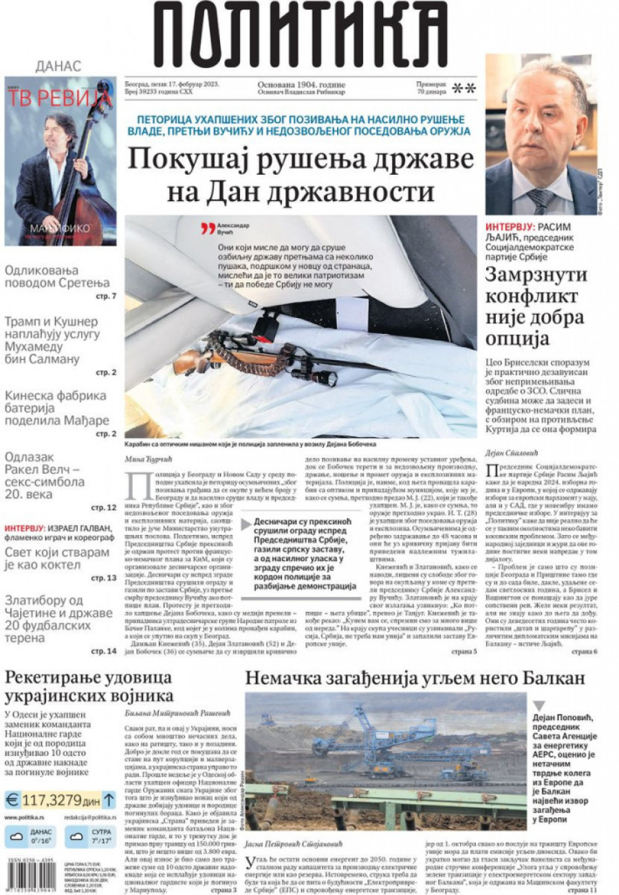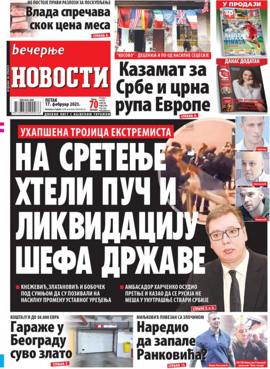 Dnevne novine u Srbiji za petak 17. februar 2023. godine na naslovnim stranama najavljuju brojne aktuelne društveno-političke teme i donose ekskluzivne priče.