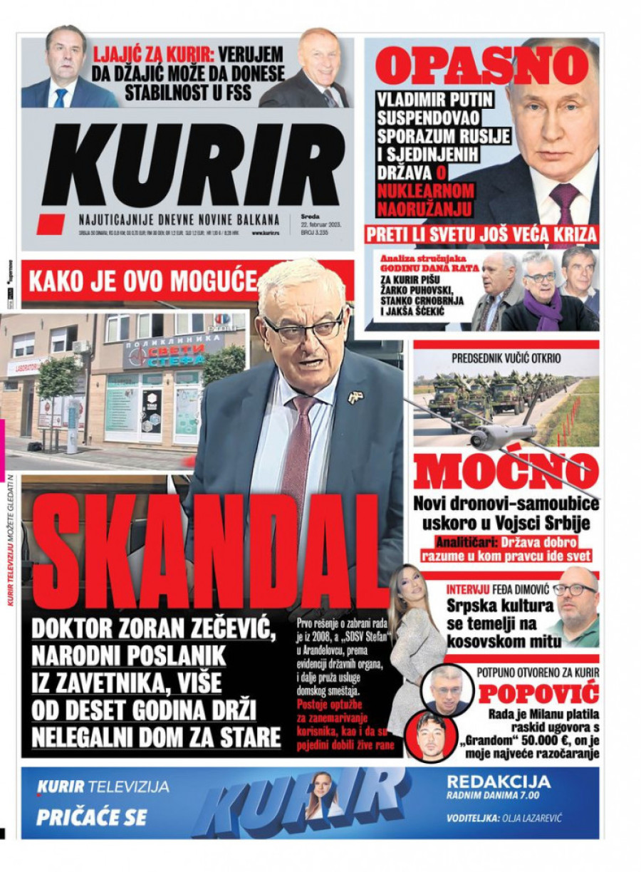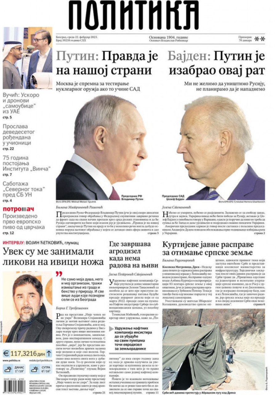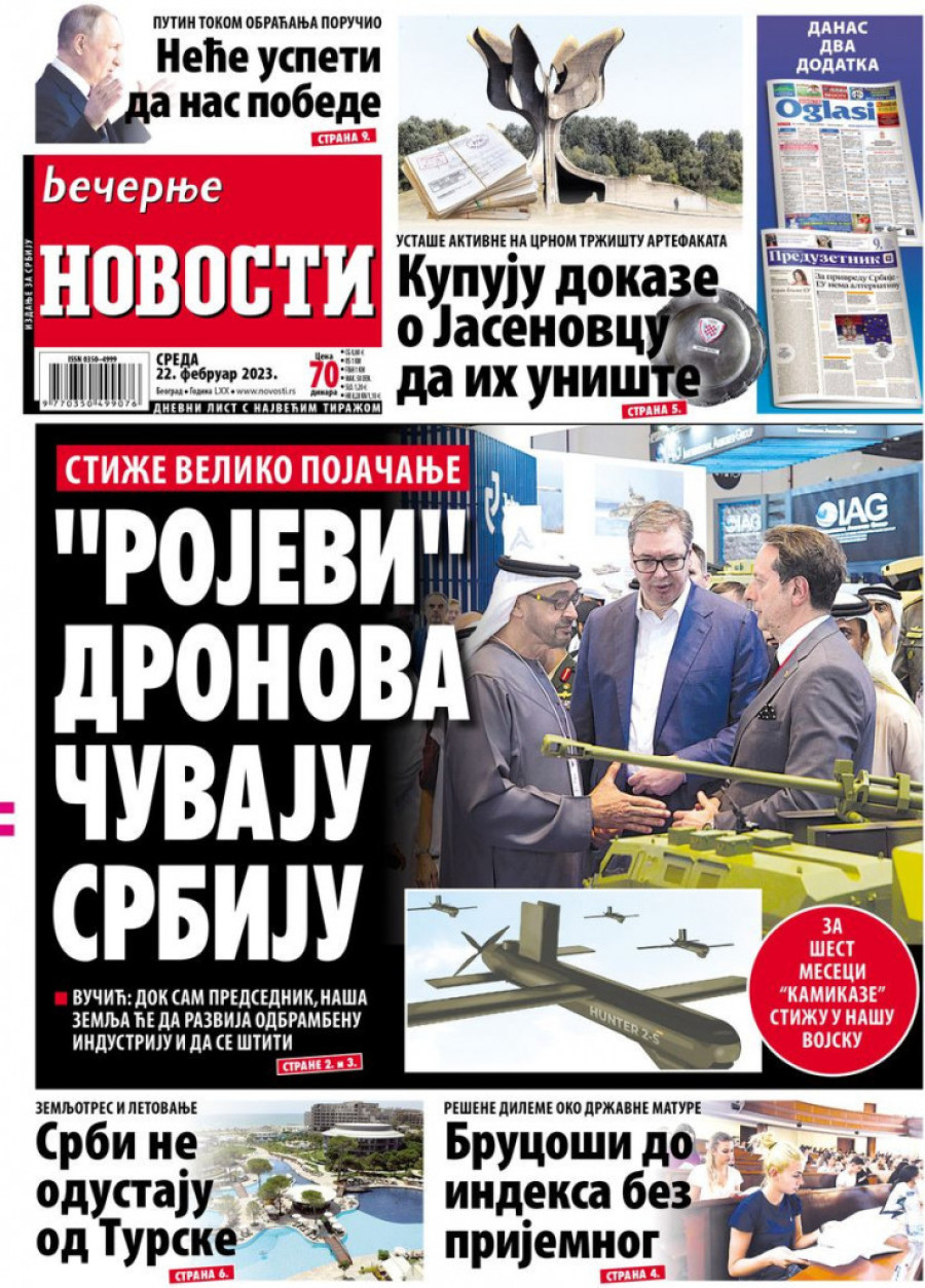 Dnevne novine u Srbiji za sredu 22. februar 2023. godine na naslovnim stranama najavljuju brojne aktuelne društveno-političke teme i donose ekskluzivne priče.