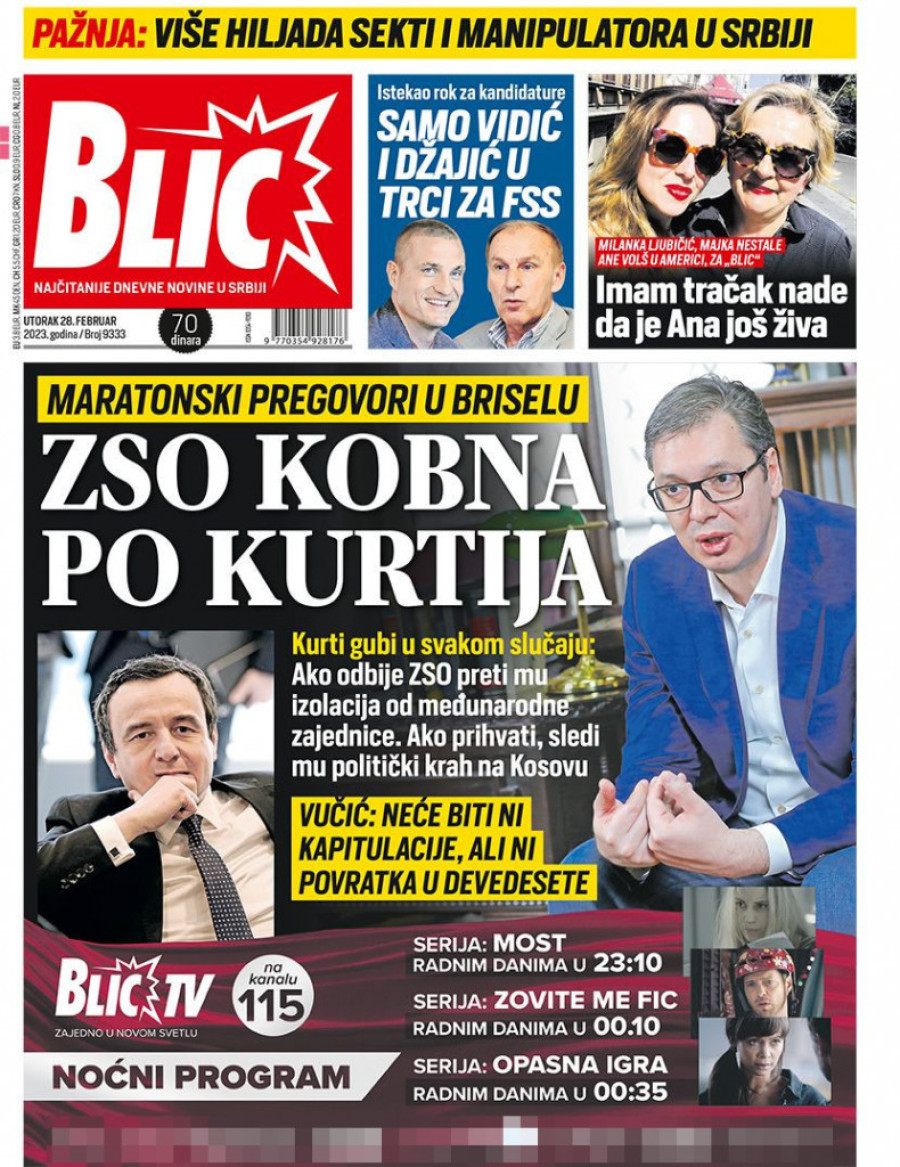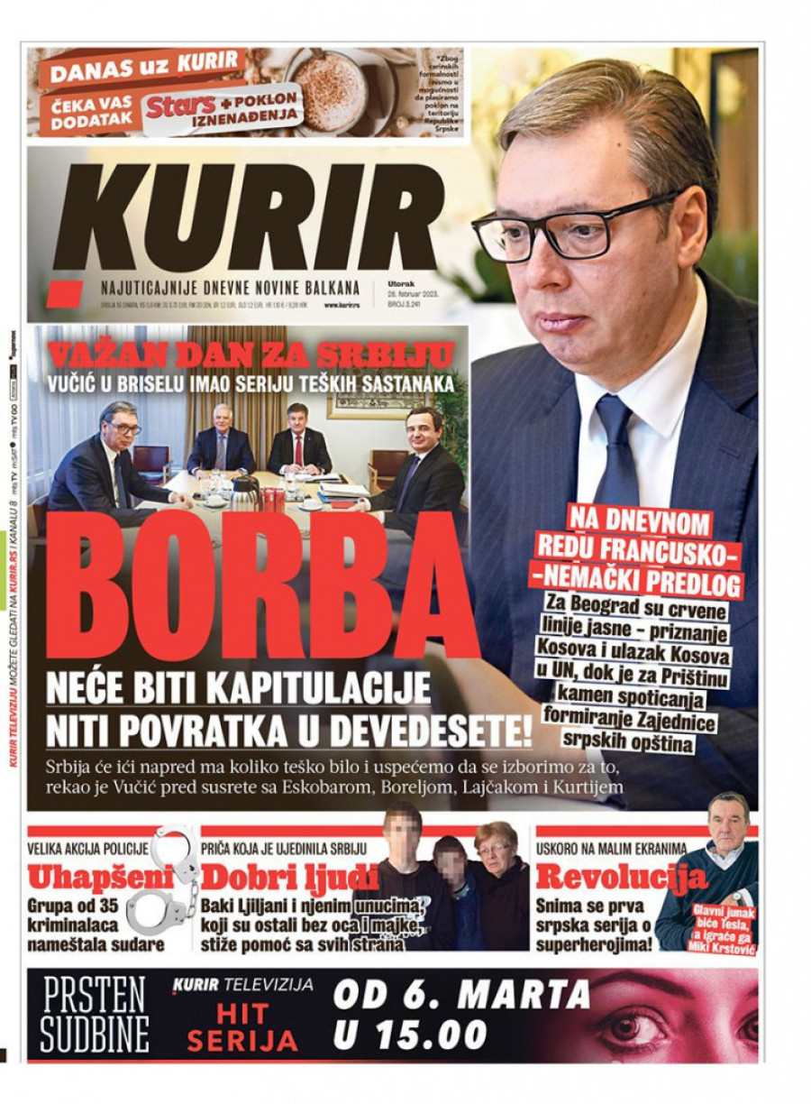 Dnevne novine u Srbiji za utorak 28. februar 2023. godine na naslovnim stranama najavljuju brojne aktuelne društveno-političke teme i donose ekskluzivne priče.