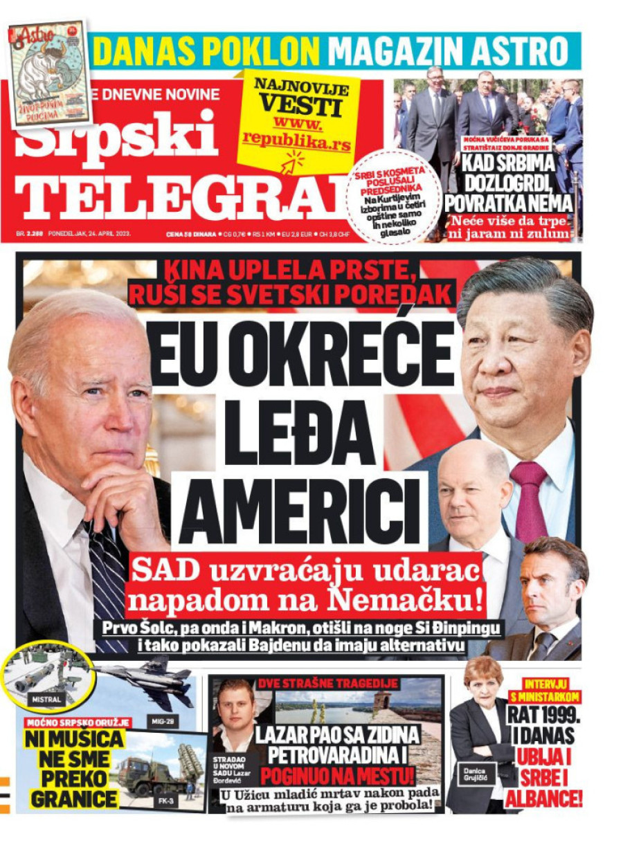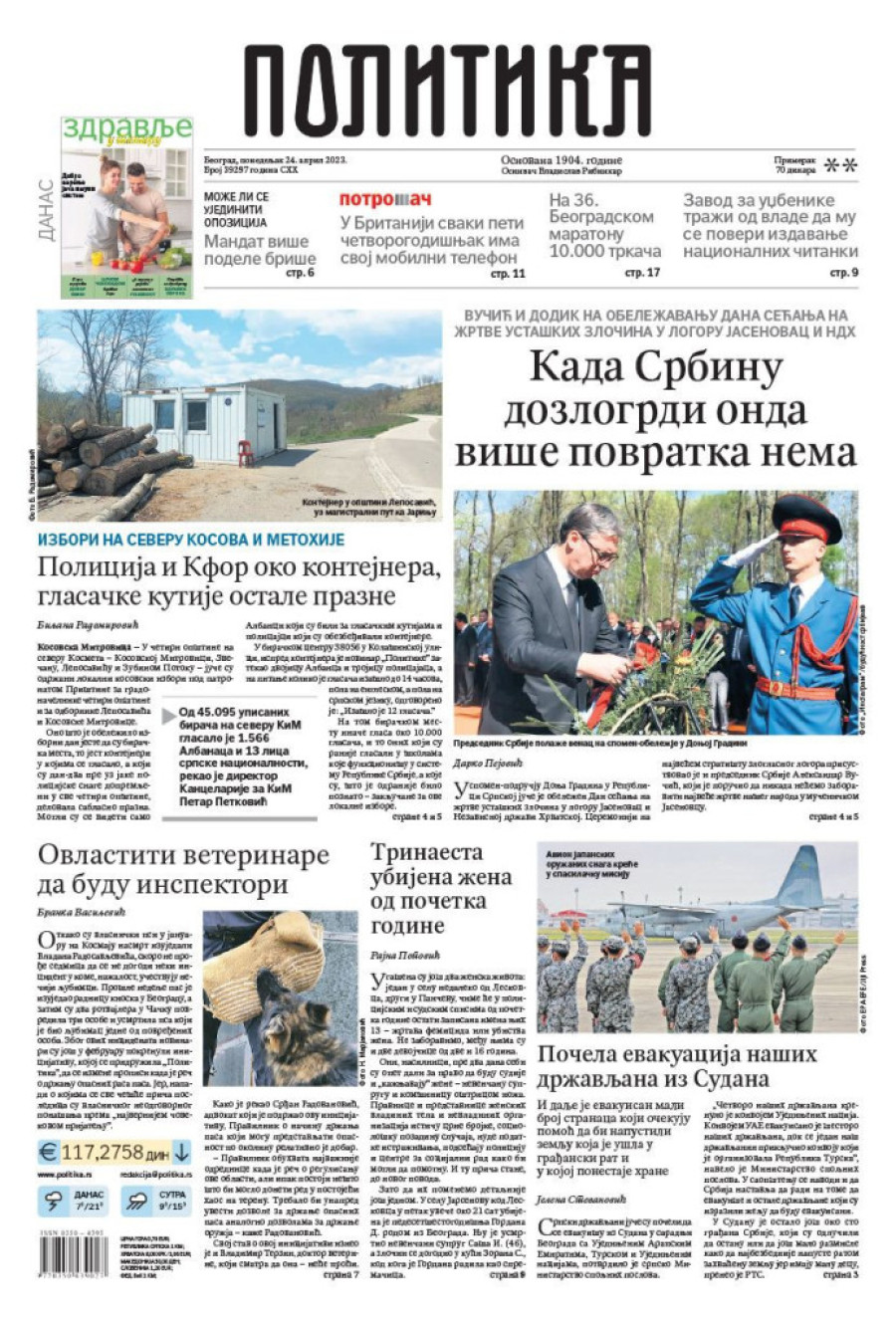 Dnevne novine u Srbiji za ponedeljak 24. april 2023. godine na naslovnim stranama najavljuju brojne aktuelne društveno-političke teme.