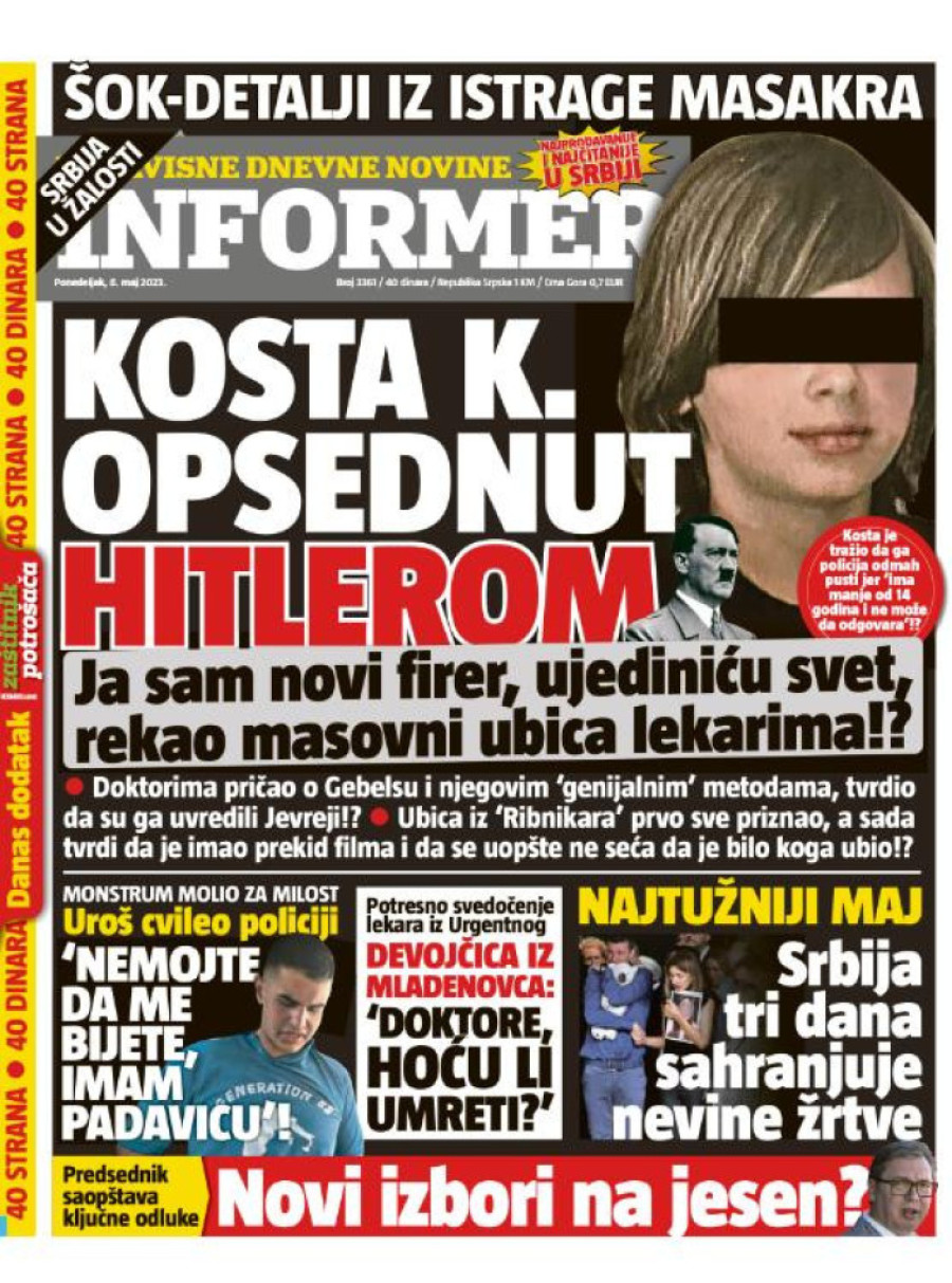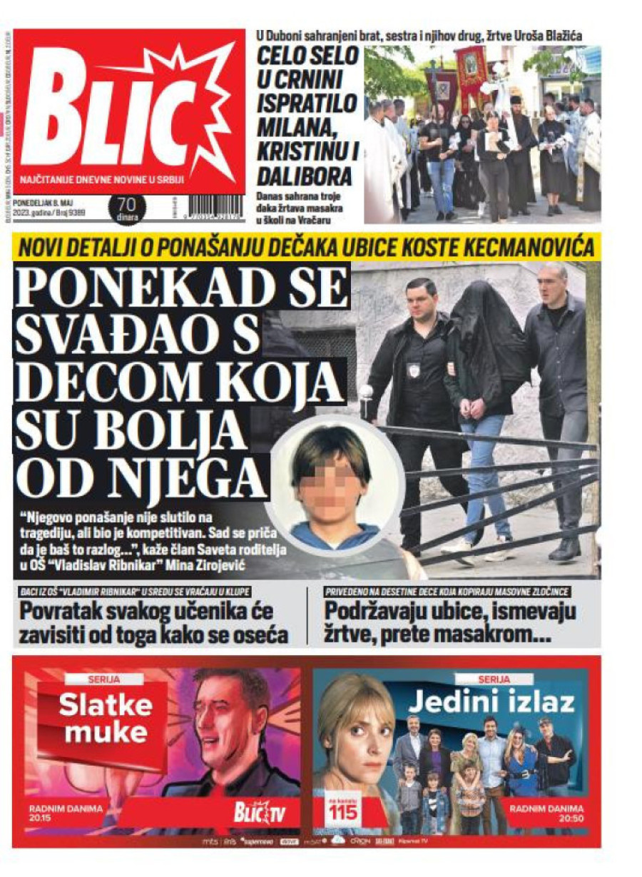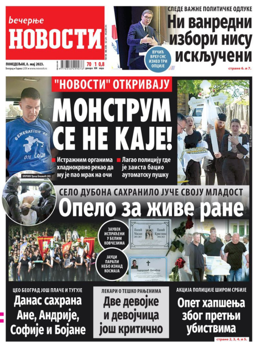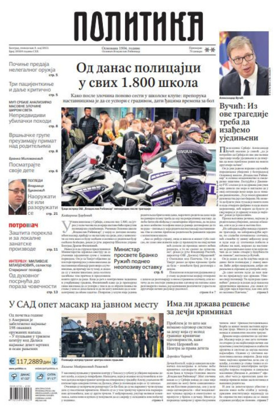 Dnevne novine u Srbiji za ponedeljak 8. maj 2023. godine na naslovnim stranama najavljuju brojne aktuelne društveno-političke teme.