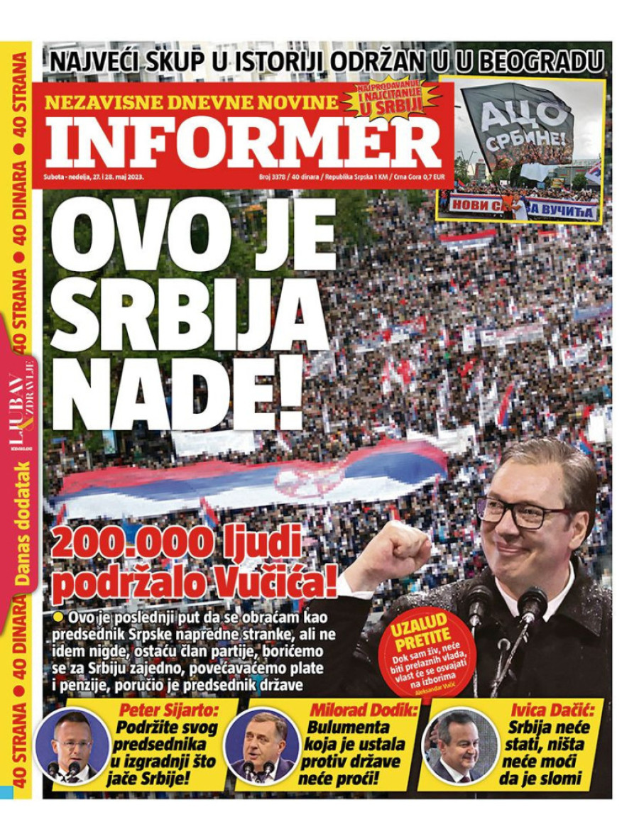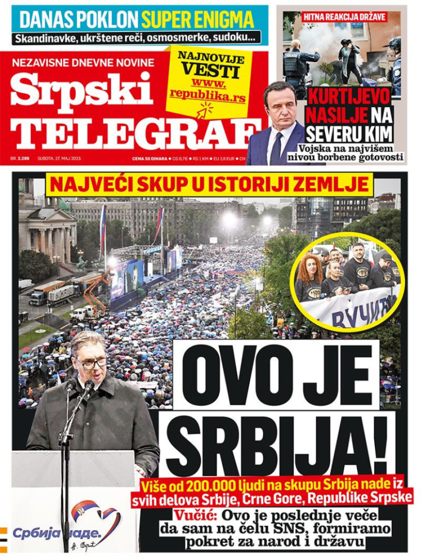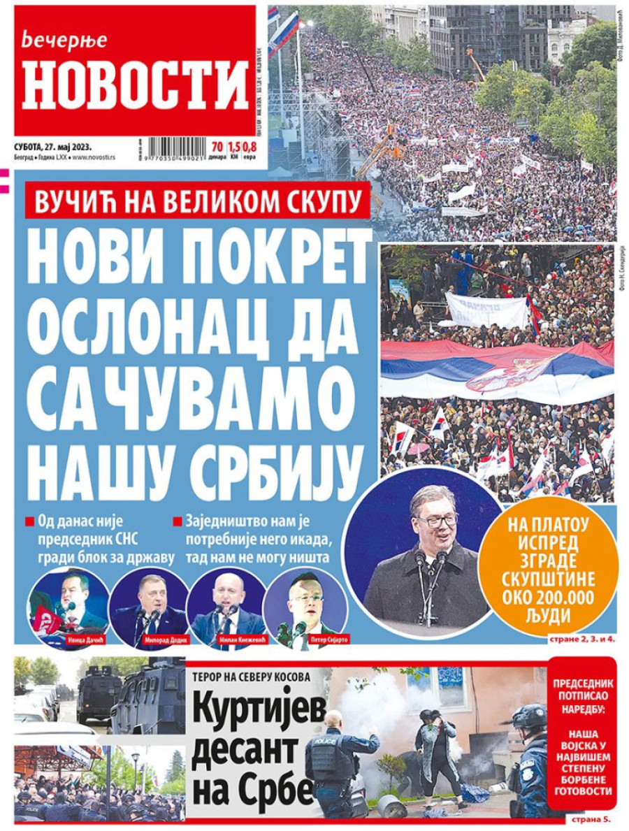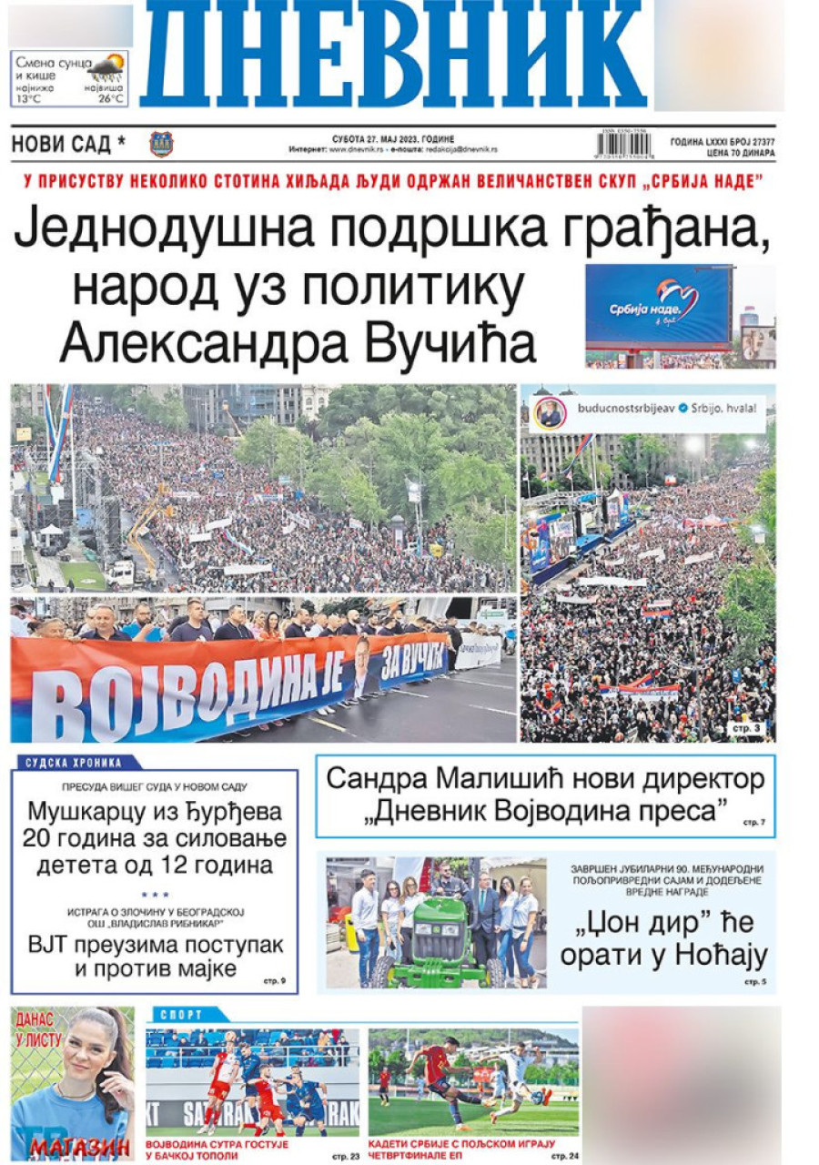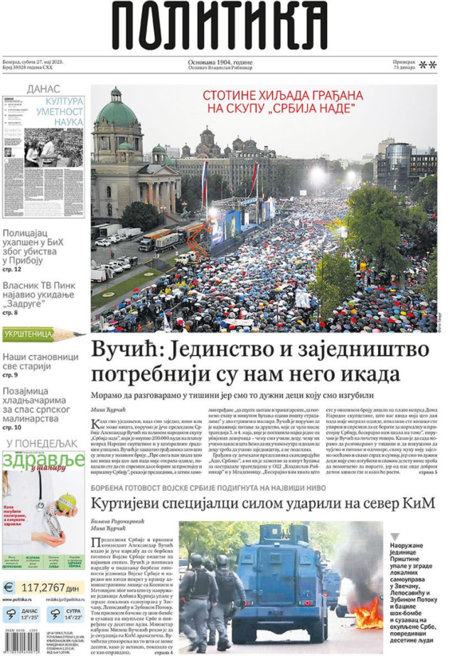 Naslovne strane sutrašnjih novina: Prelistavanje štampe za 27. maj 2023. godine