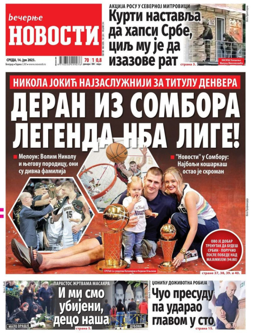 Dnevne novine u Srbiji za sredu 14. jun 2023. godine na naslovnim stranama najavljuju brojne aktuelne društveno-političke teme.