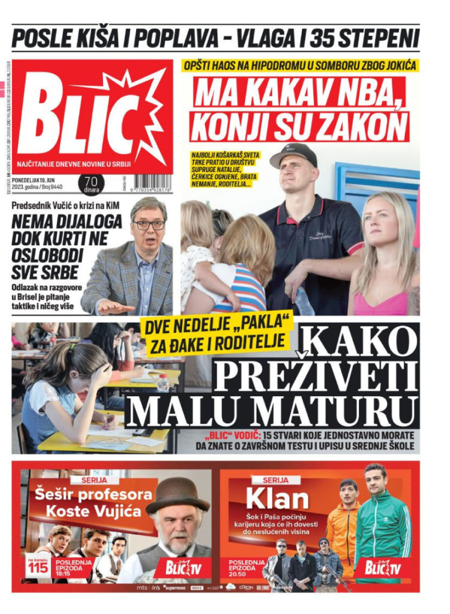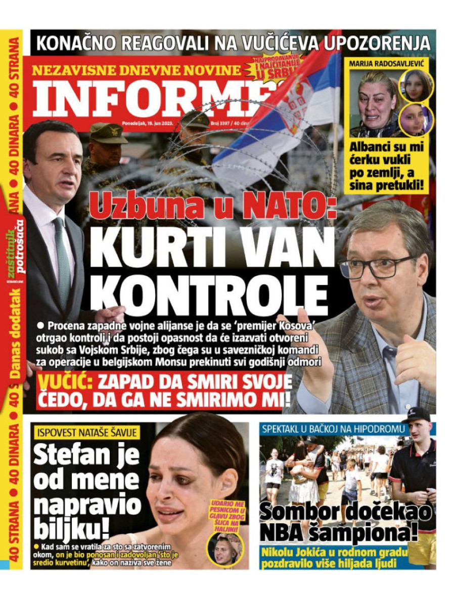 Naslovne strane sutrašnjih novina: Prelistavanje štampe za 19. jun 2023. godine