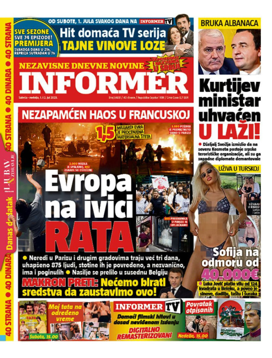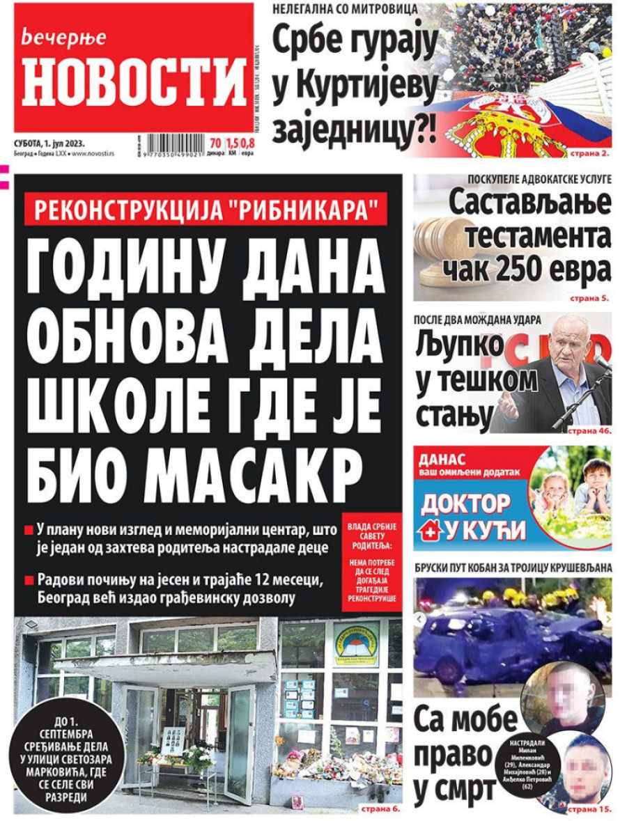 Dnevne novine u Srbiji za subotu 1. jul 2023. godine na naslovnim stranama najavljuju brojne aktuelne društveno-političke teme.