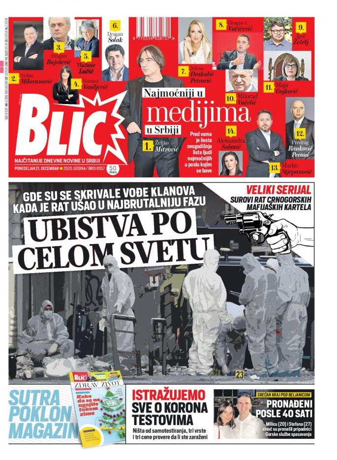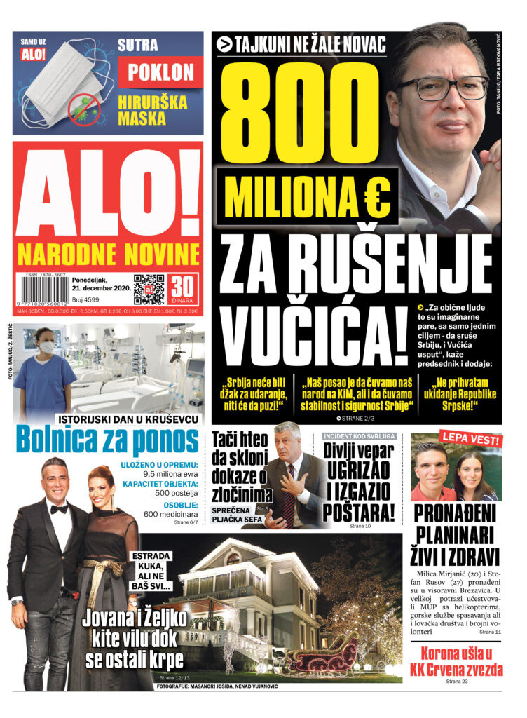 Dnevne novine u Srbiji za nedelju, 20. decembar 2020. godine, na naslovnim stranama pišu o brojnim aktuelnim društveno-političkim temama i donose brojne ekskluzivne priče.