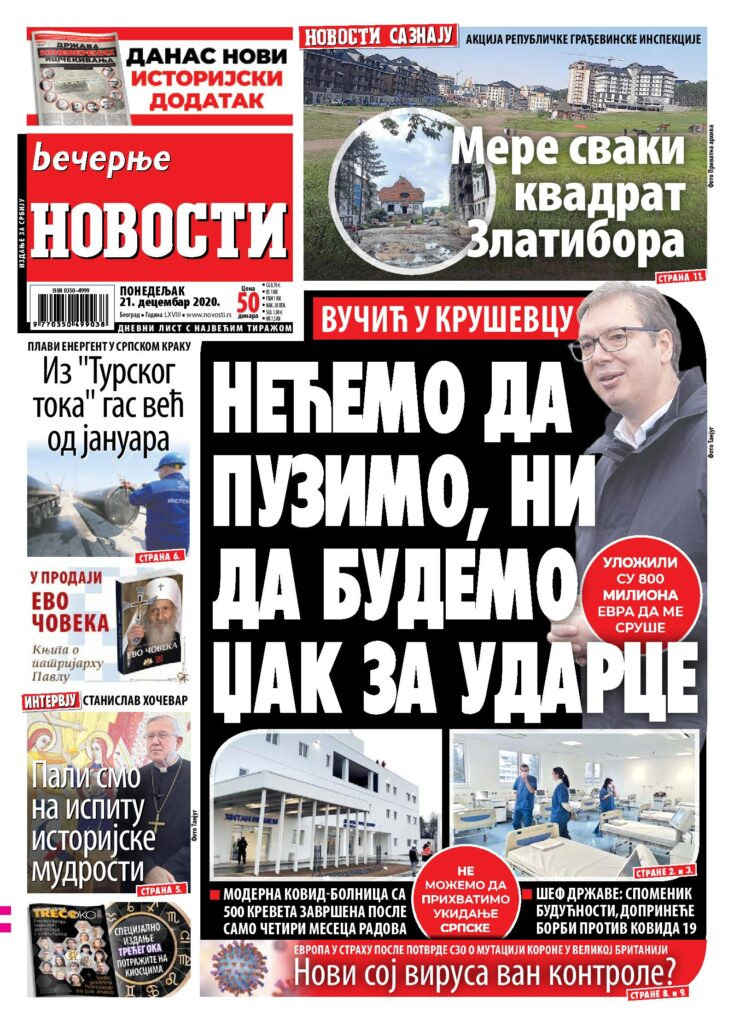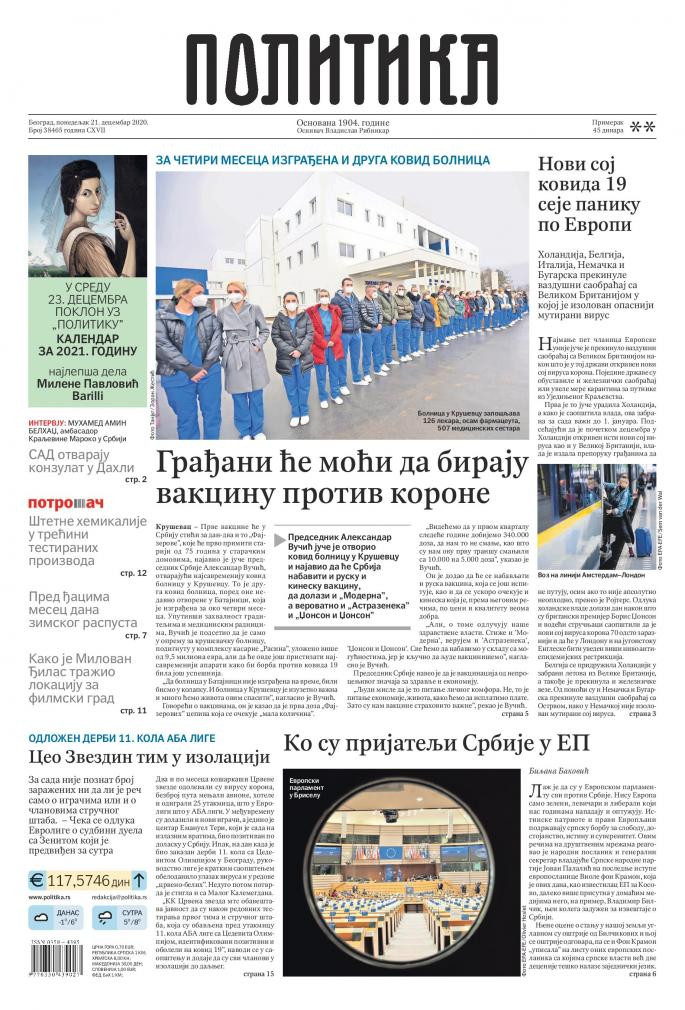 Prelistavanje štampe za ponedeljak, 21. decembar 2020. godine