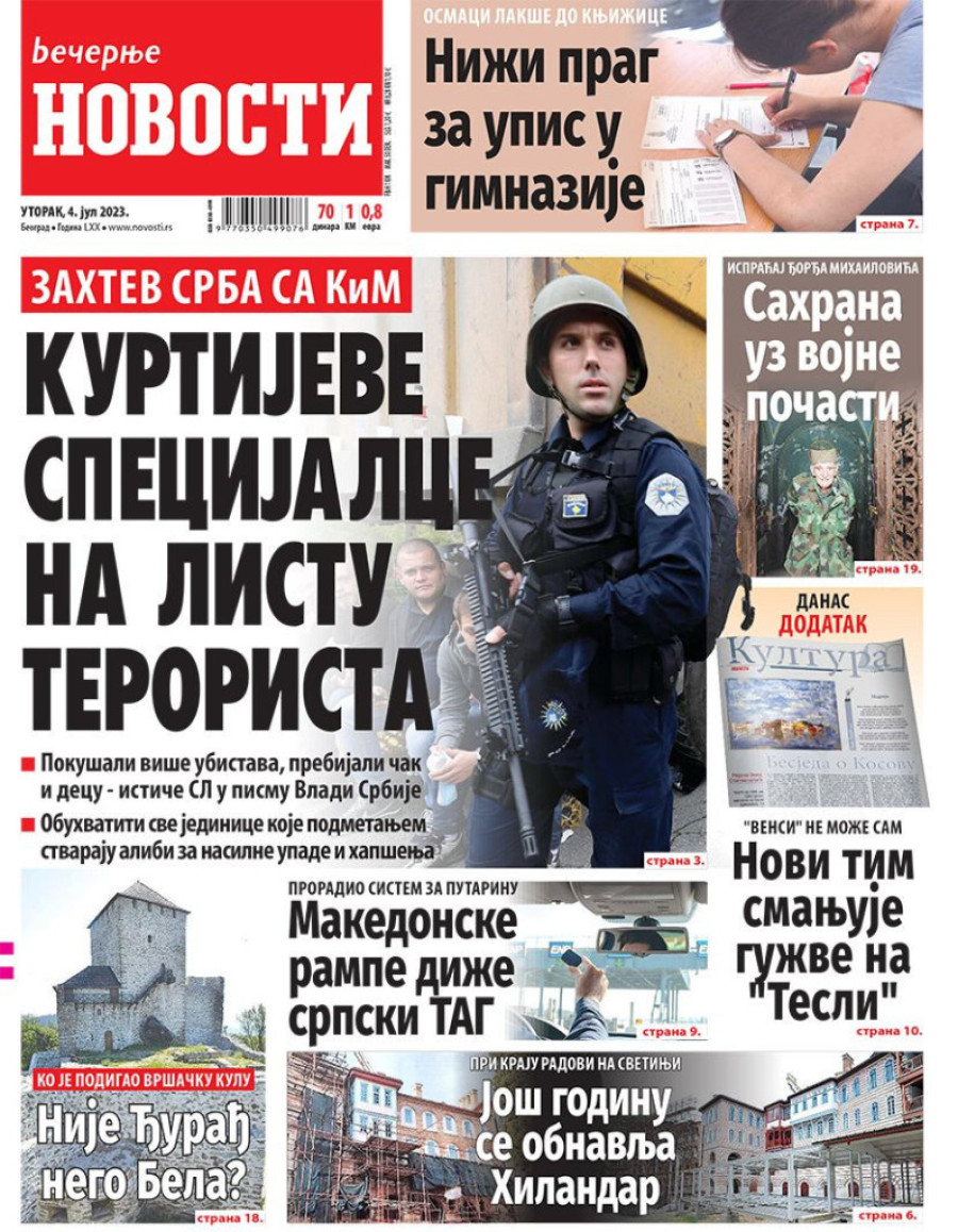 Dnevne novine u Srbiji za utorak 4. jul 2023. godine na naslovnim stranama najavljuju brojne aktuelne društveno-političke teme.