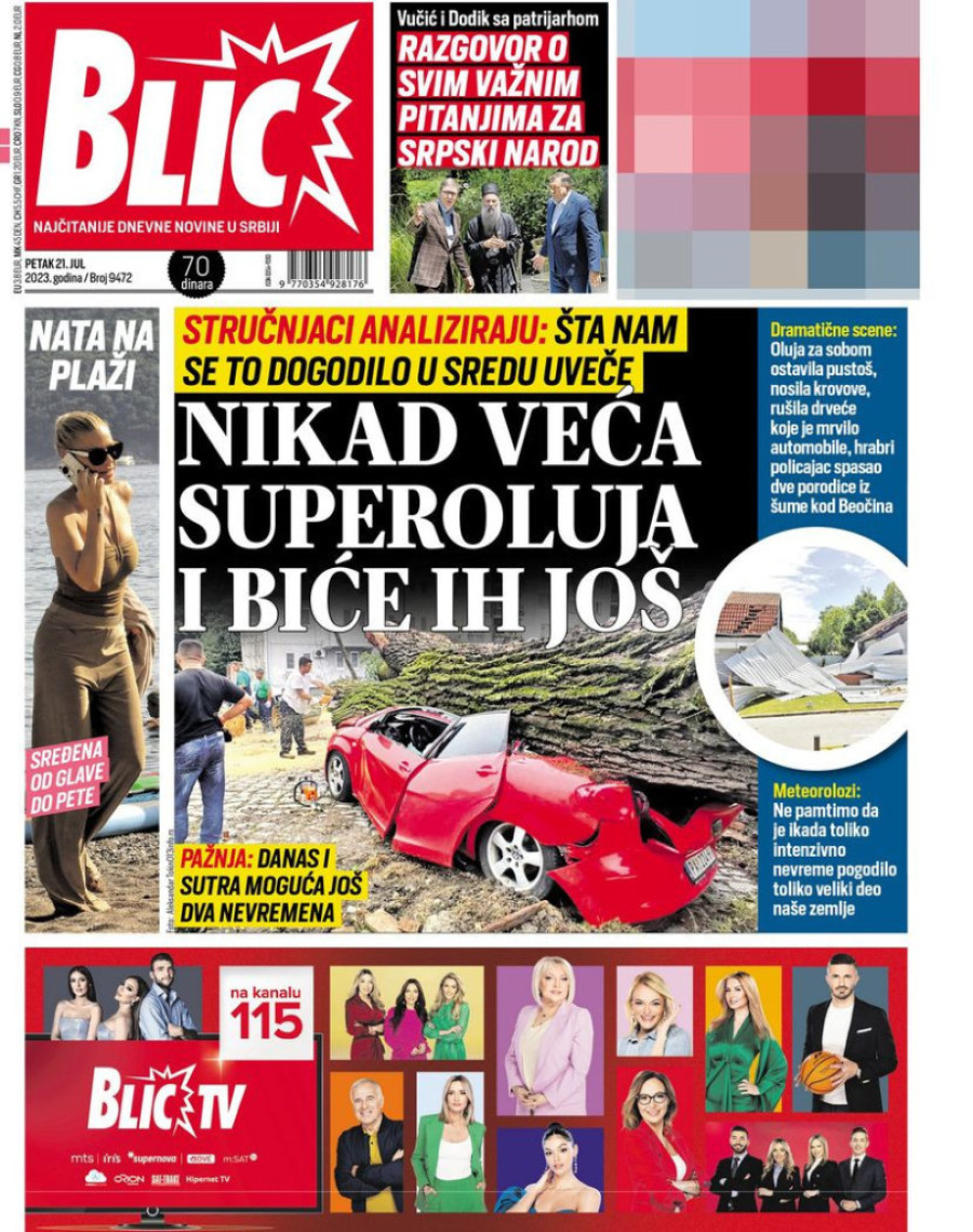 Naslovne strane sutrašnjih novina: Prelistavanje štampe za 21. jul 2023. godine