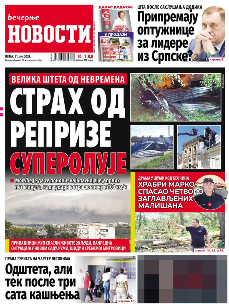 Dnevne novine u Srbiji za petak 21. jul 2023. godine na naslovnim stranama najavljuju brojne aktuelne društveno-političke teme.