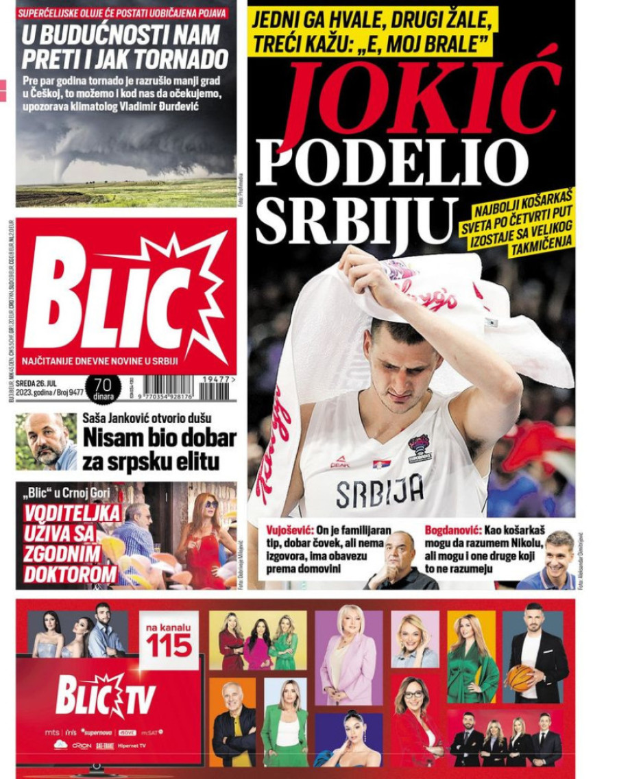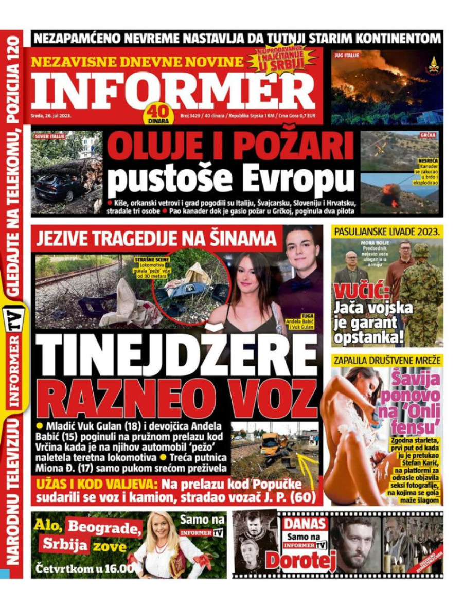 Naslovne strane sutrašnjih novina: Prelistavanje štampe za 26. jul 2023. godine