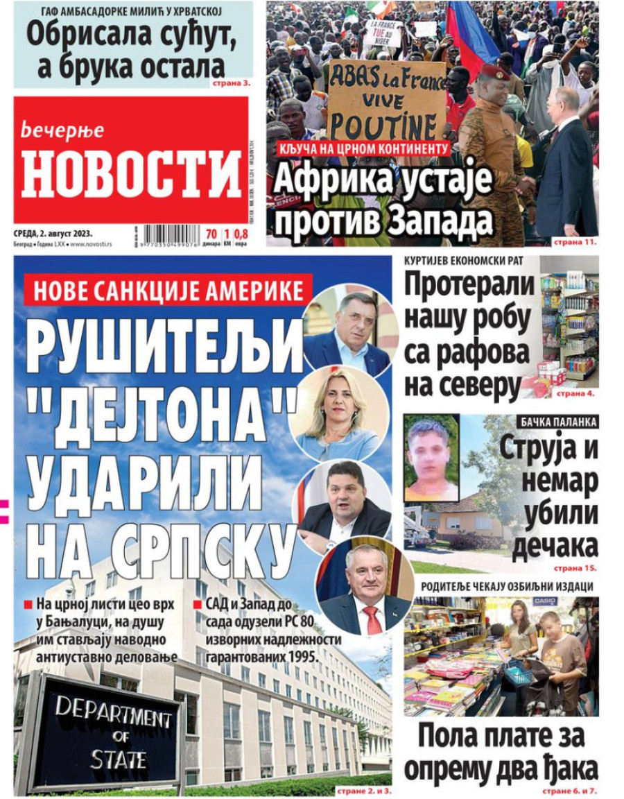 Dnevne novine u Srbiji za sredu 2. avgust 2023. godine na naslovnim stranama najavljuju brojne aktuelne društveno-političke teme.