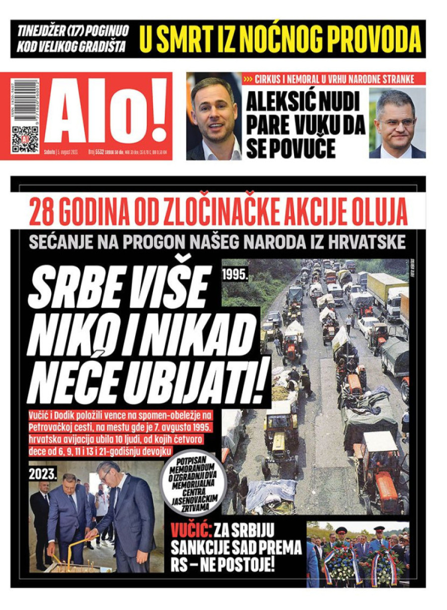 Dnevne novine u Srbiji za subotu 5. avgust 2023. godine na naslovnim stranama najavljuju brojne aktuelne društveno-političke teme.