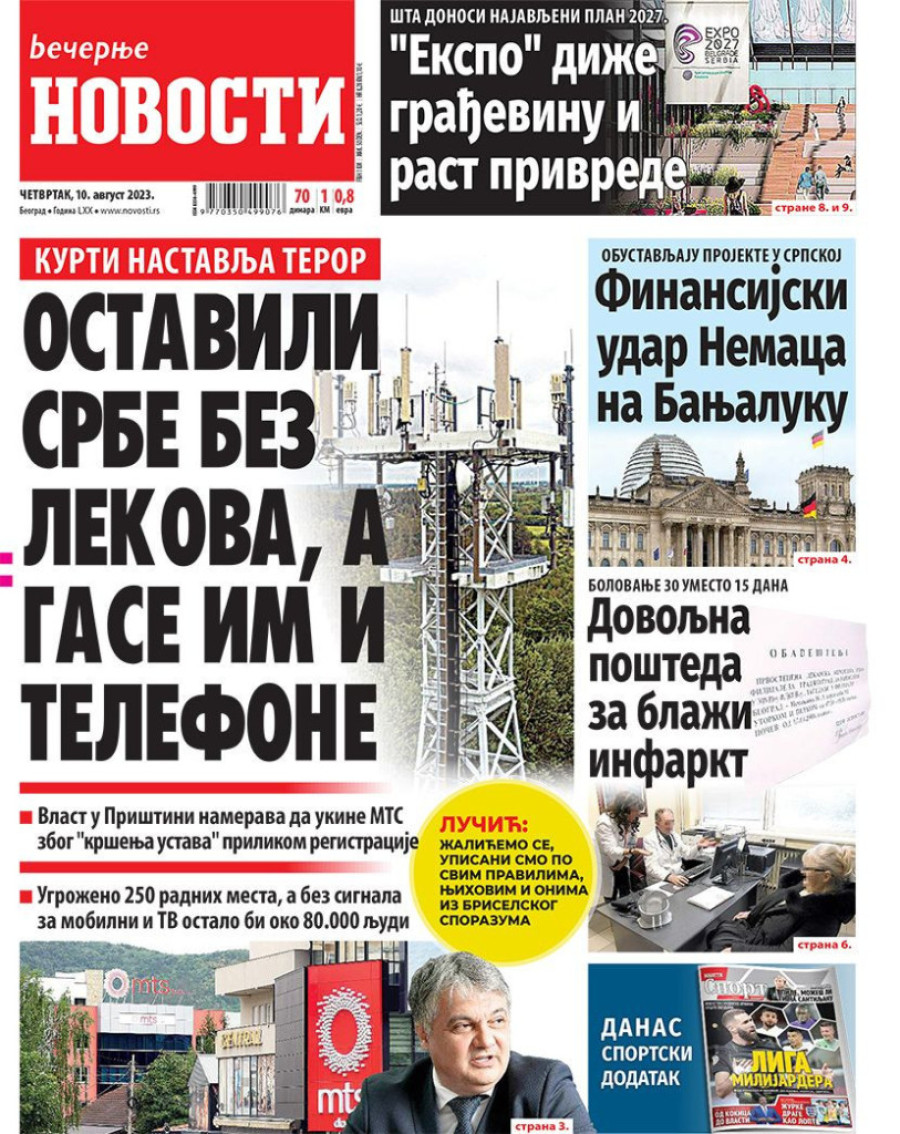 Dnevne novine u Srbiji za četvrtak 10. avgust 2023. godine na naslovnim stranama najavljuju brojne aktuelne društveno-političke teme.