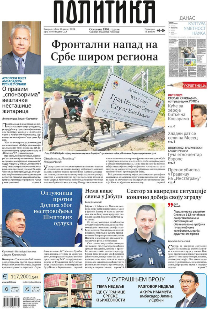 Dnevne novine u Srbiji za subotu 12. avgust 2023. godine na naslovnim stranama najavljuju brojne aktuelne društveno-političke teme.