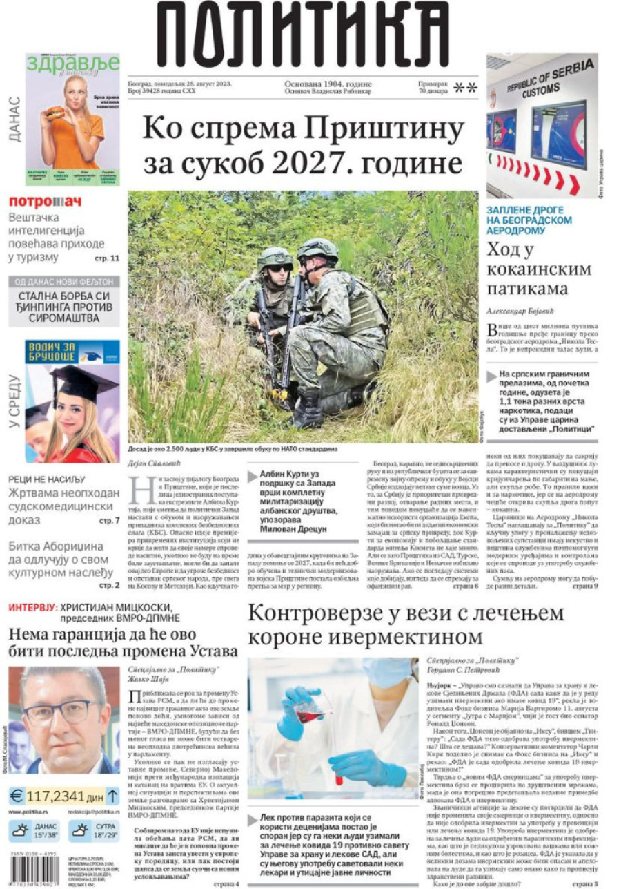 Dnevne novine u Srbiji za ponedeljak 28. avgust 2023. godine na naslovnim stranama najavljuju brojne aktuelne društveno-političke teme.