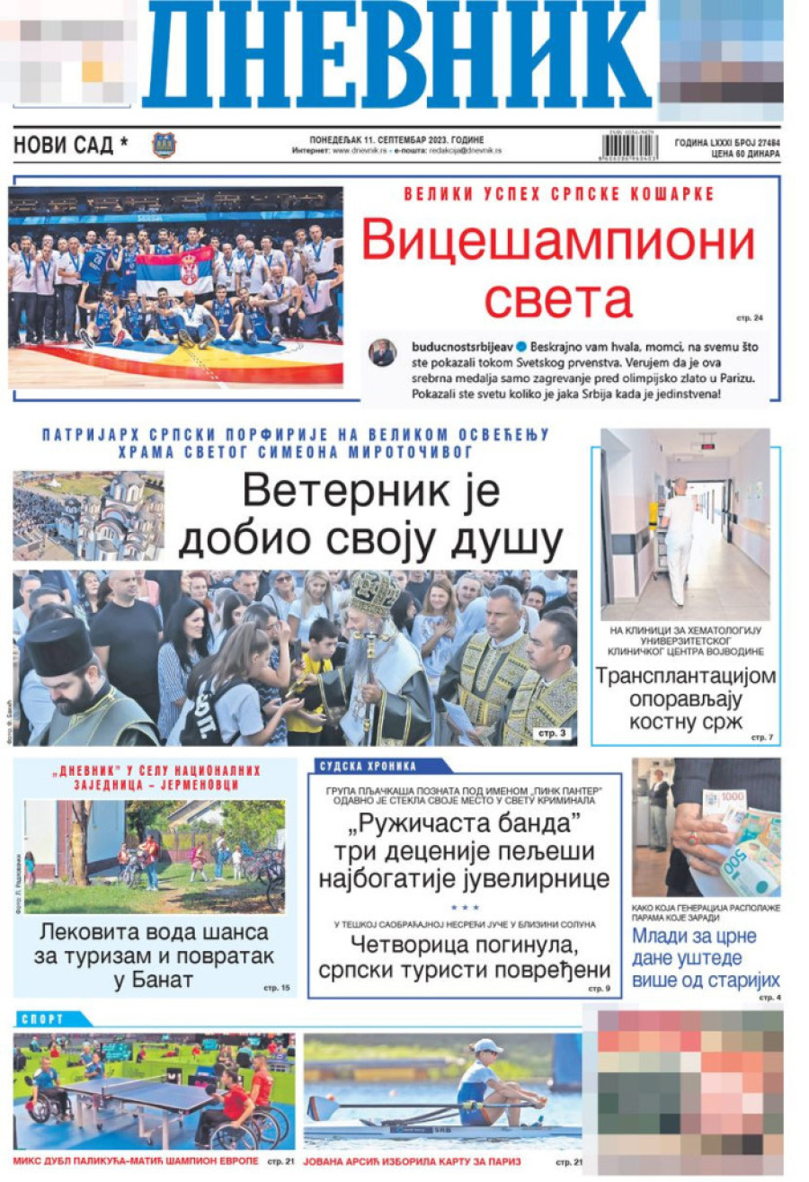 Naslovne strane sutrašnjih novina: Prelistavanje štampe za 11. septembar 2023. godine