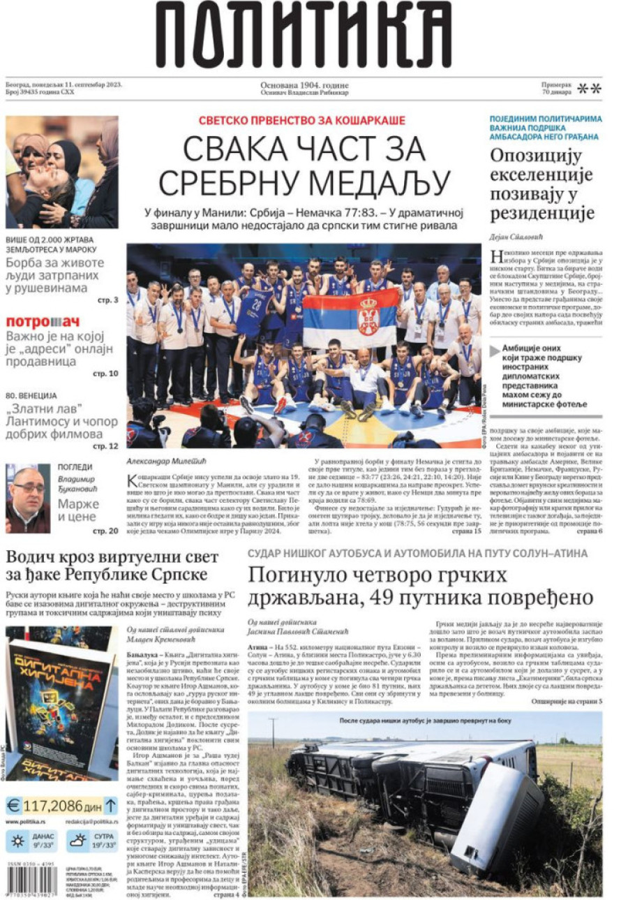Dnevne novine u Srbiji za ponedeljak 11. septembar 2023. godine na naslovnim stranama najavljuju brojne aktuelne društveno-političke teme.