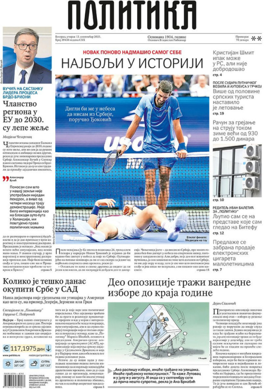 Dnevne novine u Srbiji za utorak 12. septembar 2023. godine na naslovnim stranama najavljuju brojne aktuelne društveno-političke teme.