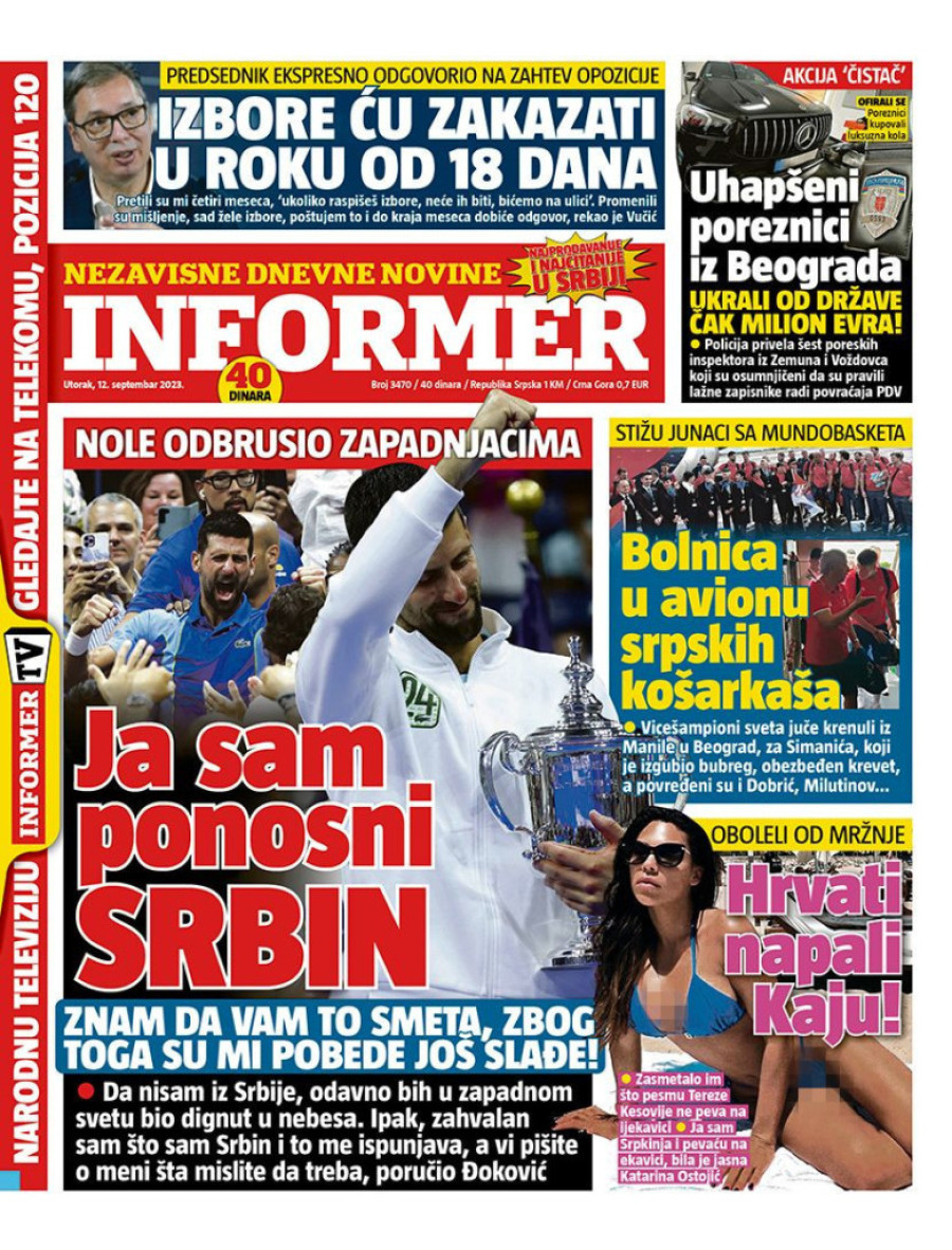 Naslovne strane sutrašnjih novina: Prelistavanje štampe za 12. septembar 2023. godine