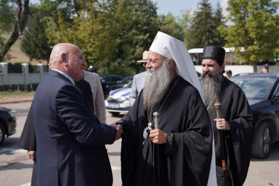 Pre same svečanosti, patrijarh Porfirije, supruga predsednika Srbije Tamara Vučić i izaslanica predsednika Srbije i ministarka kulture Maja Gojković obišli su sabor i crkvu brvnaru Svetog arhangela Mihaila.