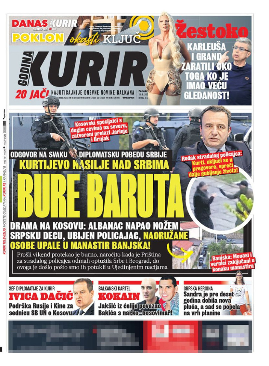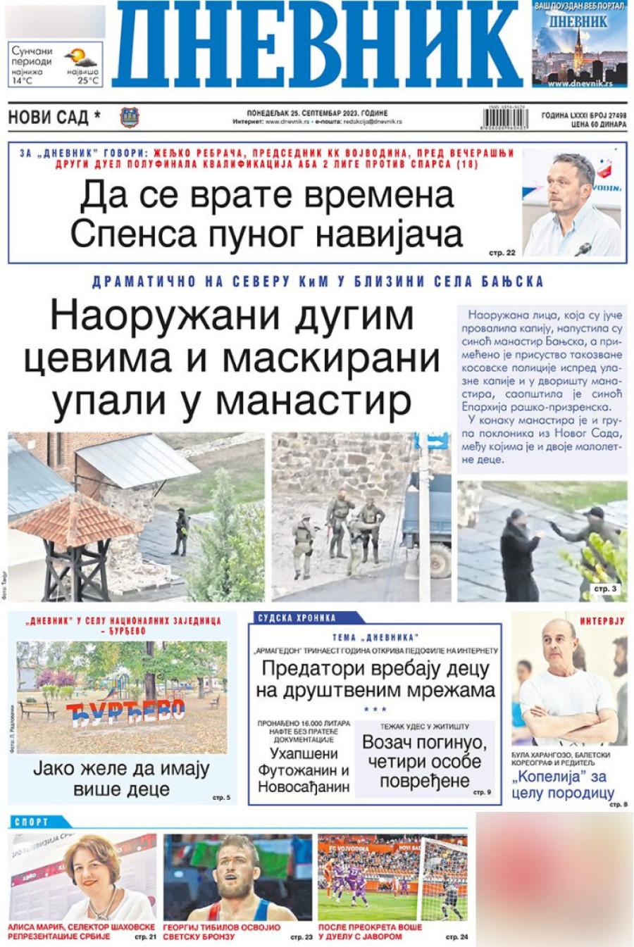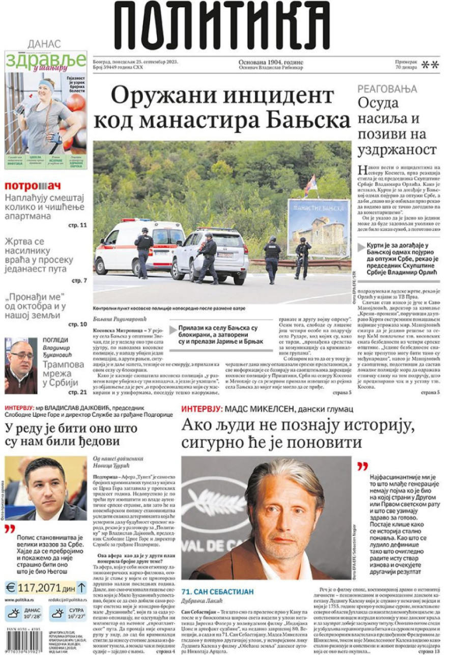 Dnevne novine u Srbiji za ponedeljak 25. septembar 2023. godine na naslovnim stranama najavljuju brojne aktuelne društveno-političke teme.