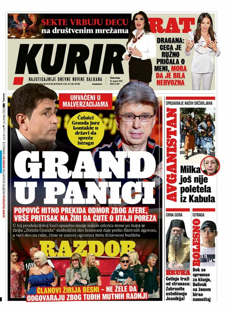 Dnevne novine u Srbiji za četvrtak, 19. avgust 2021. godine, na naslovnim stranama najavljuju brojne aktuelne društveno-političke teme i donose ekskluzivne priče.
