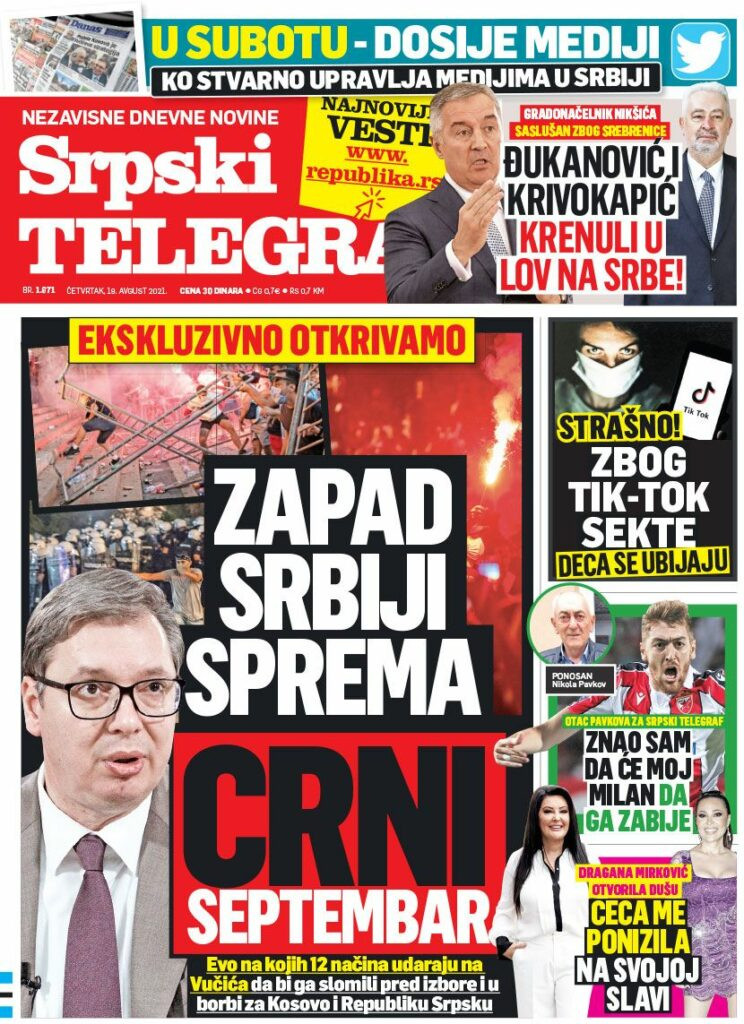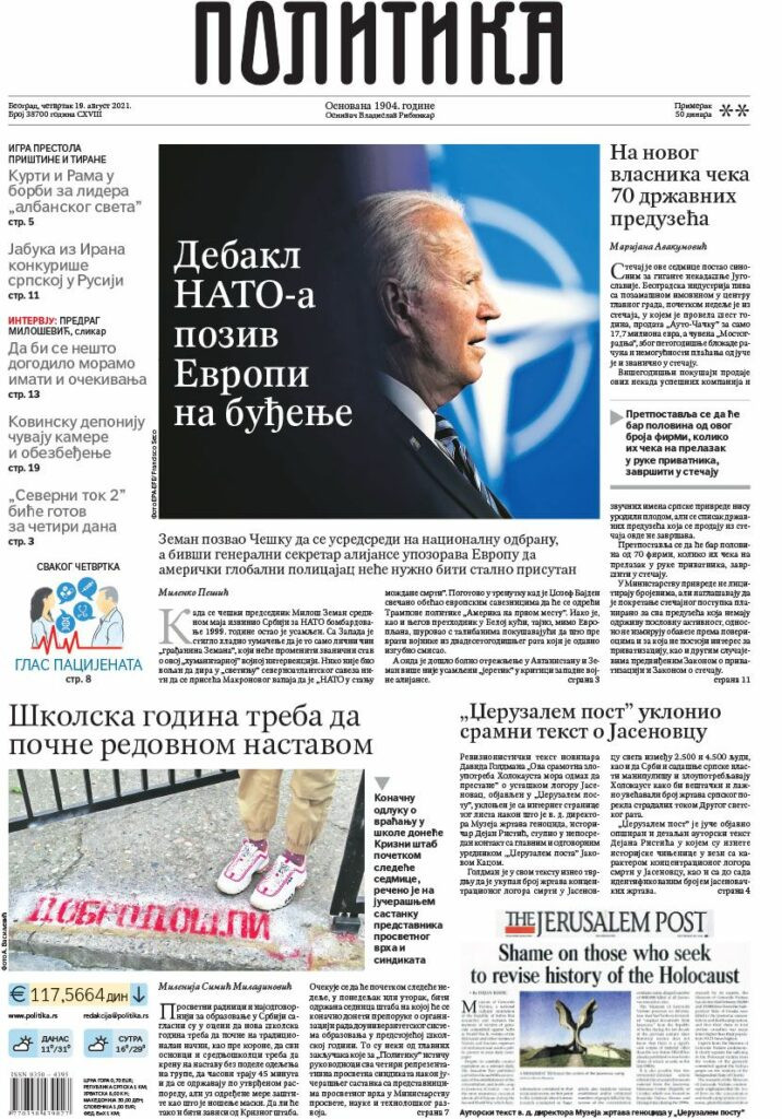 Prelistavanje štampe za četvrtak, 19. avgust 2021. godine