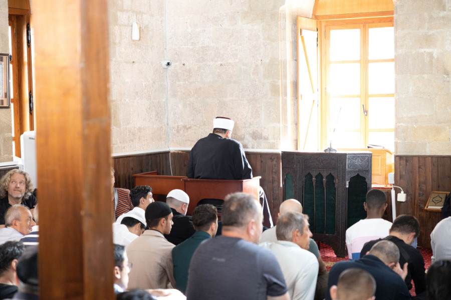 Okupljeni su u tišini sačekali reis-ul-ulemu Islamske zajednice Srbije Nedžmedina Saćipija koji je držao molitvu, odnosno hutbu, povodom događaja u Palestini.