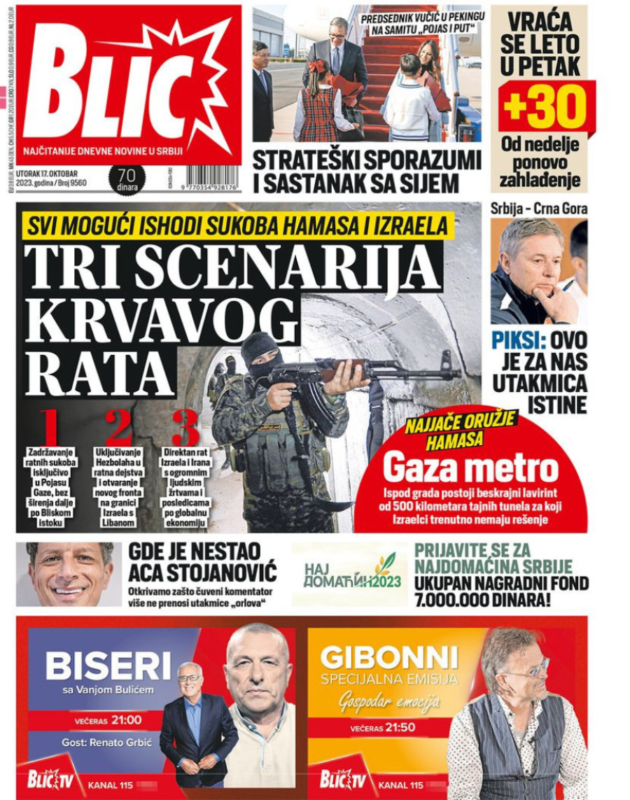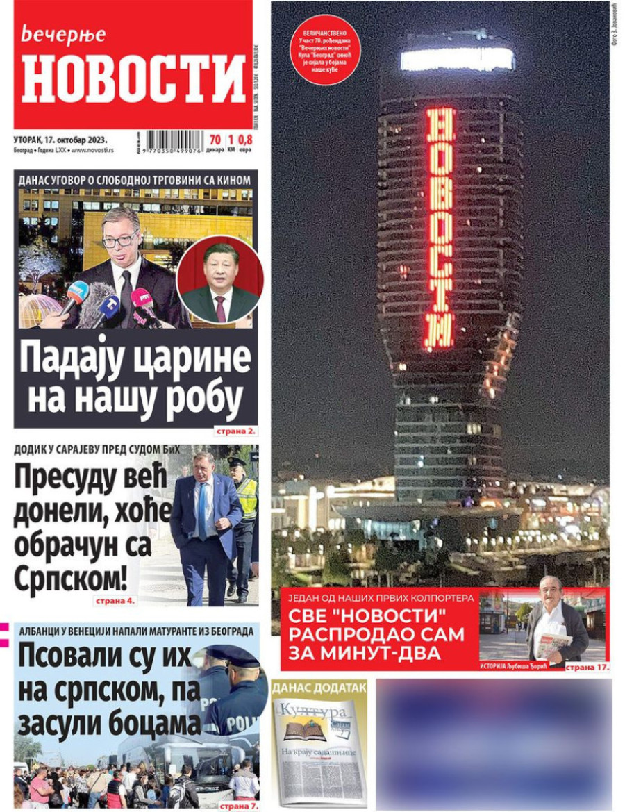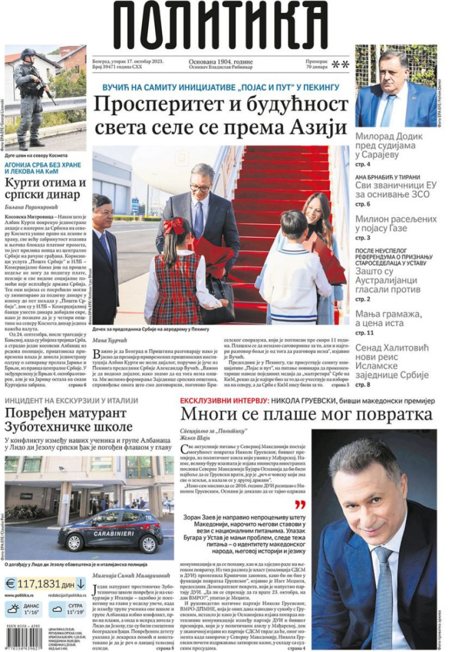 Dnevne novine u Srbiji za utorak 17. oktobar 2023. godine na naslovnim stranama najavljuju brojne aktuelne društveno-političke teme.
