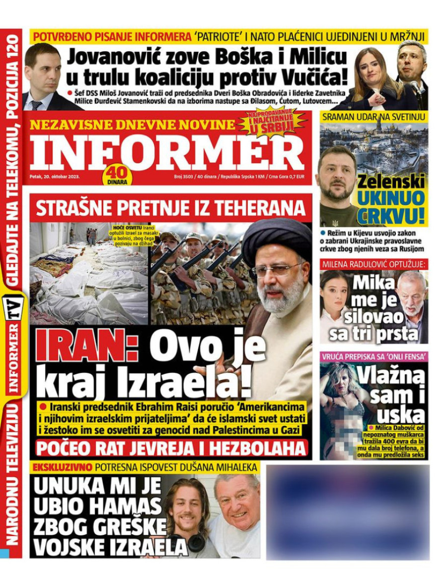 Naslovne strane sutrašnjih novina: Prelistavanje štampe za 20. oktobar 2023. godine