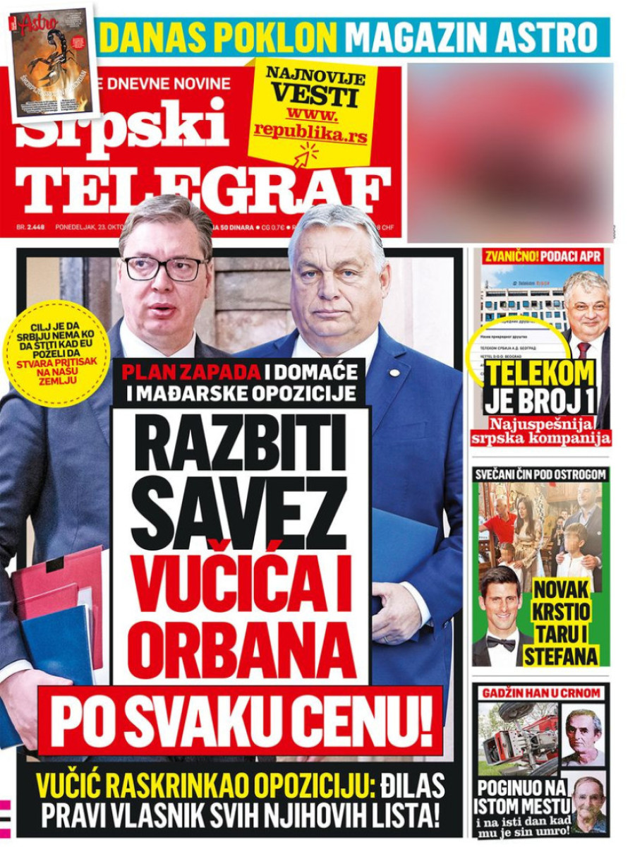 Naslovne strane sutrašnjih novina: Prelistavanje štampe za 23. oktobar 2023. godine