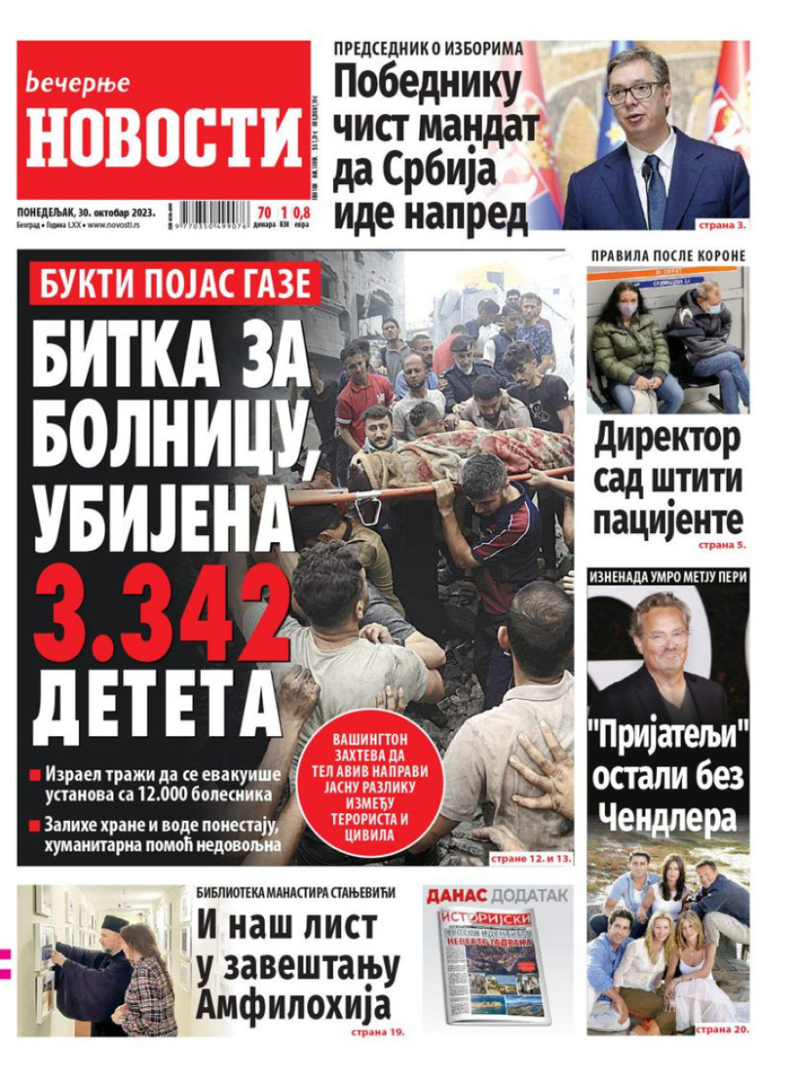 Naslovne strane sutrašnjih novina: Prelistavanje štampe za 30. oktobar 2023. godine