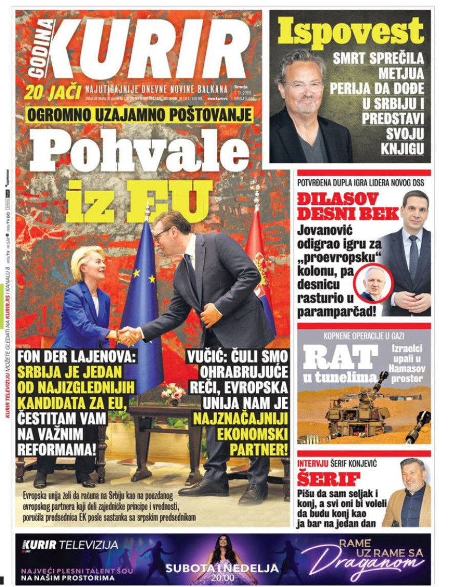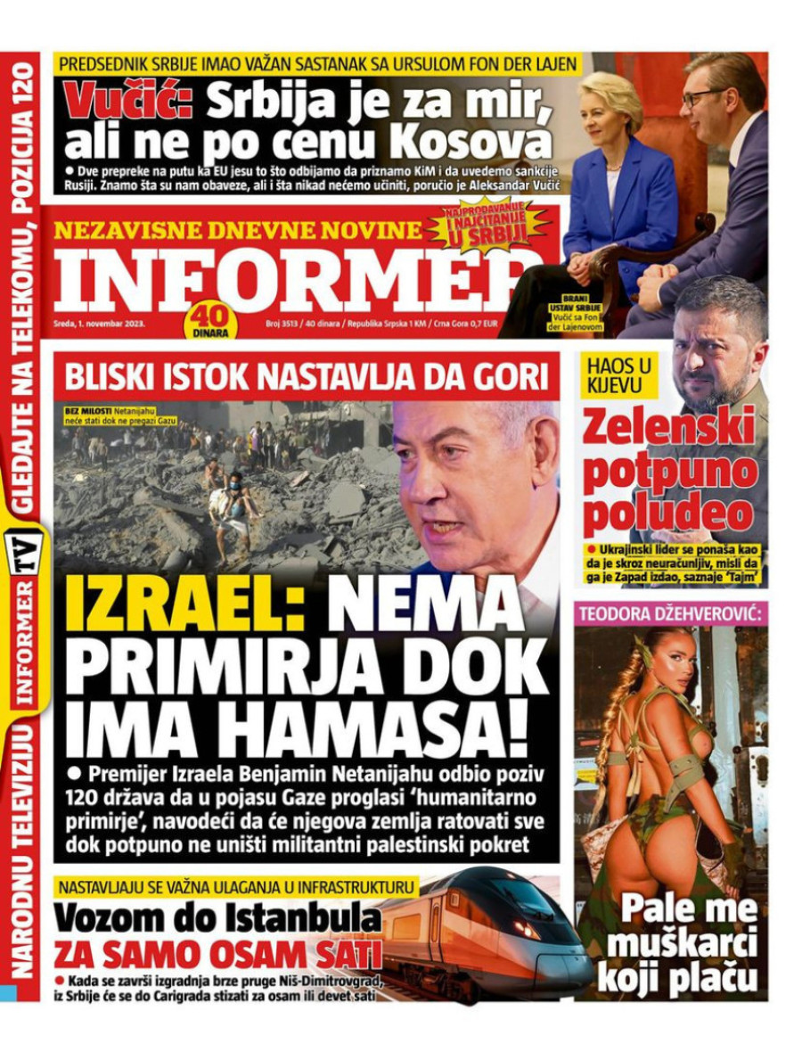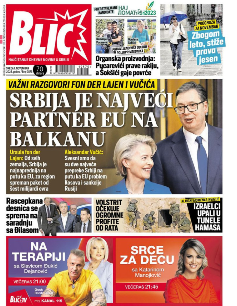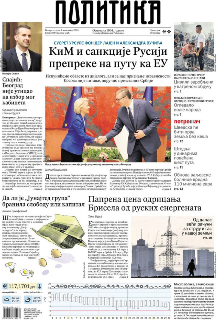 Dnevne novine u Srbiji za sredu 1. novembar 2023. godine na naslovnim stranama najavljuju brojne aktuelne društveno-političke teme.