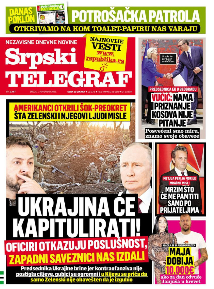 Naslovne strane sutrašnjih novina: Prelistavanje štampe za 1. novembar 2023. godine