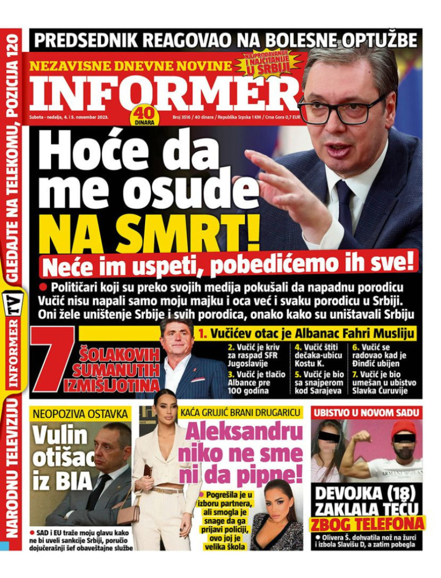 Naslovne strane dnevnih novina: Prelistavanje štampe za 4. novembar 2023. godine