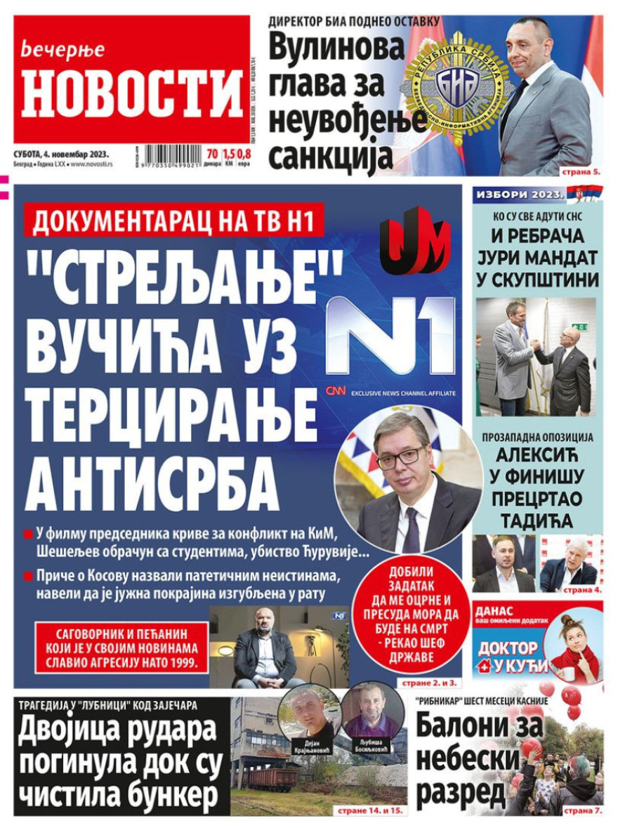 Dnevne novine u Srbiji za subotu 4. novembar 2023. godine na naslovnim stranama najavljuju brojne aktuelne društveno-političke teme.
