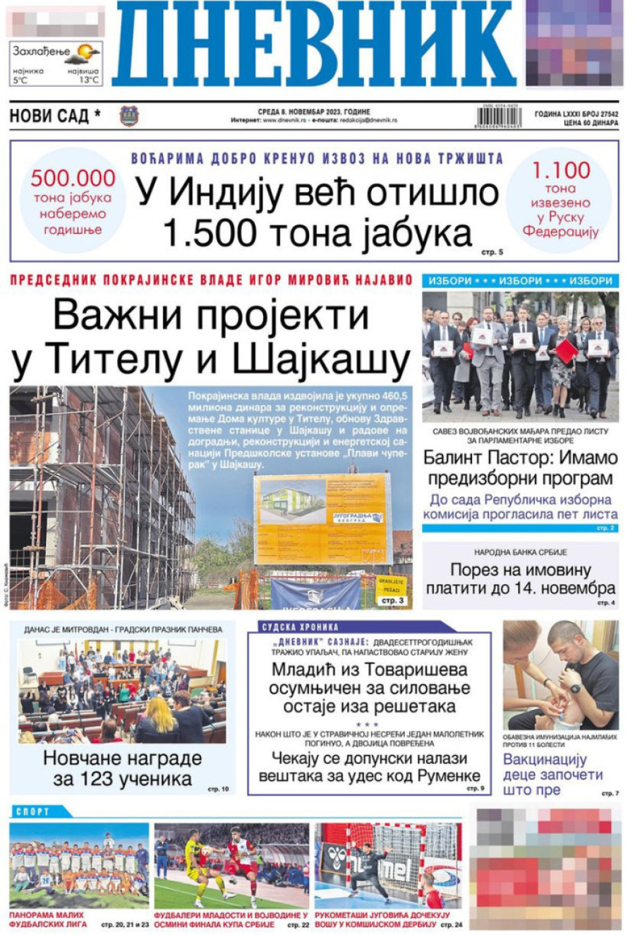 Naslovne strane dnevnih novina: Prelistavanje štampe za 8. novembar 2023. godine
