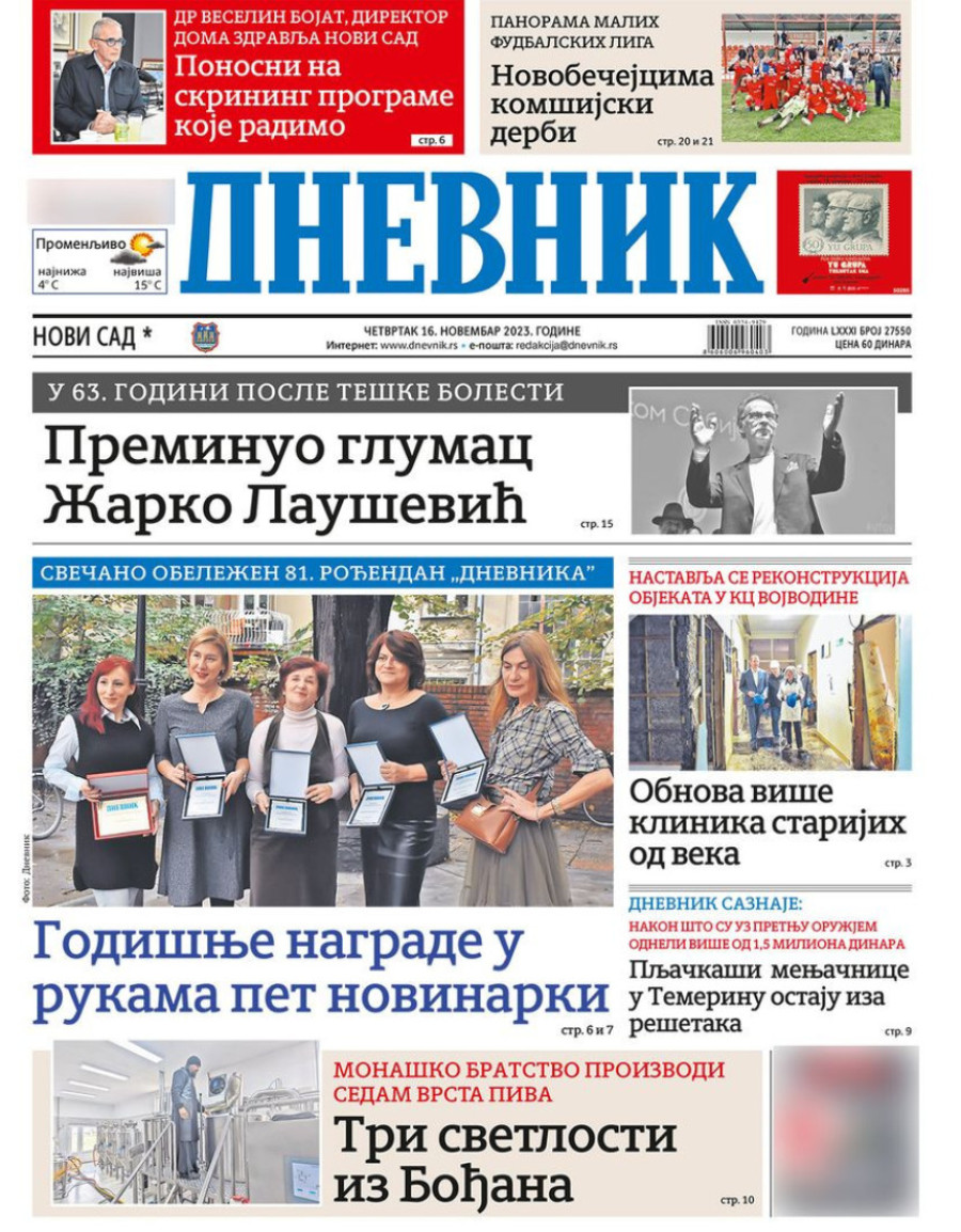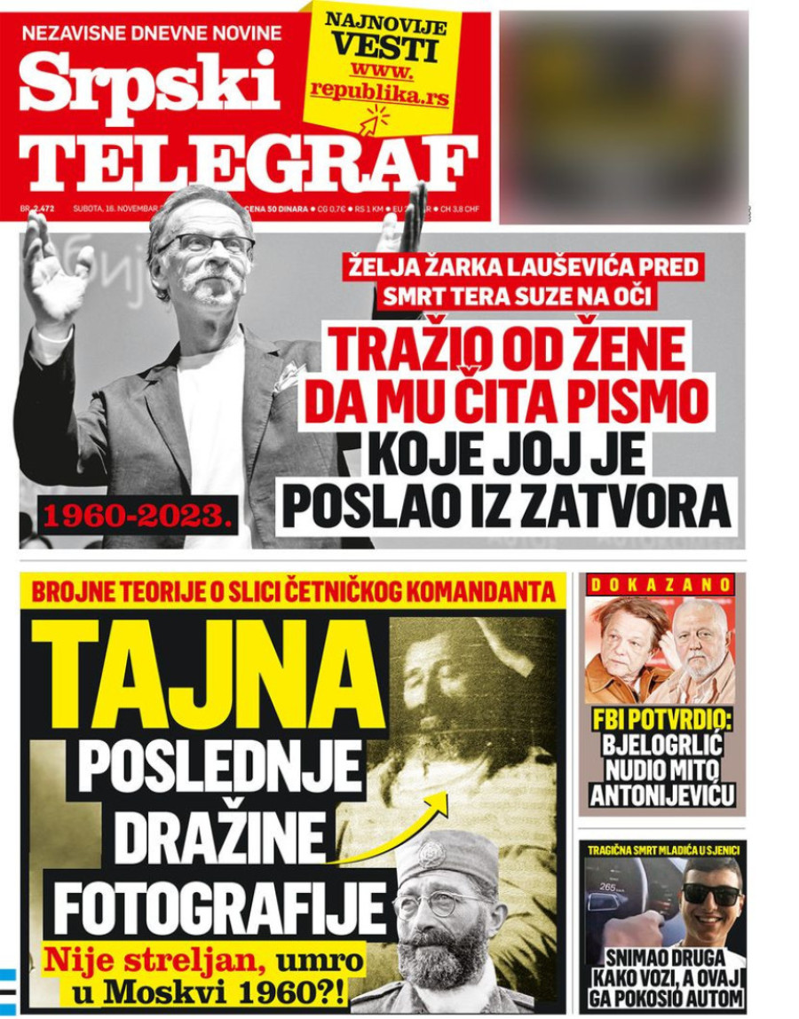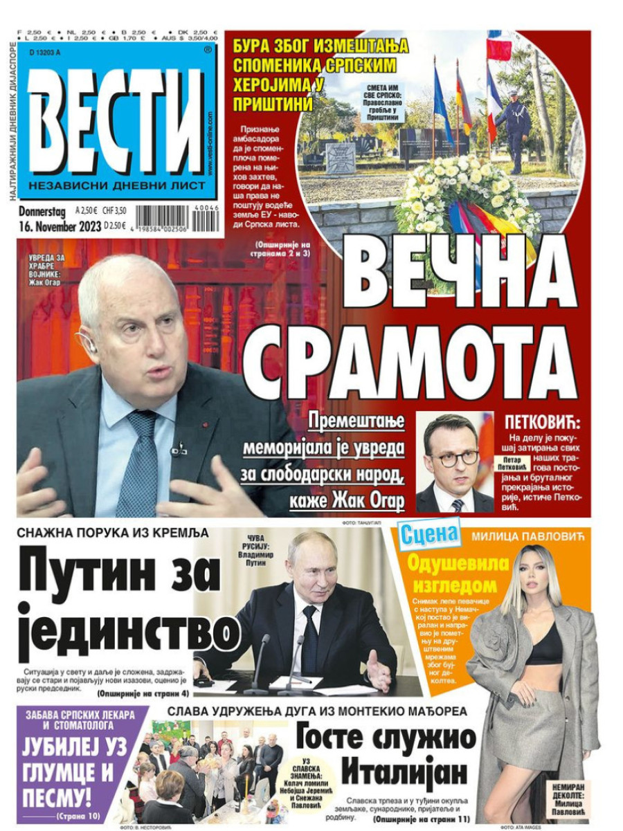 Naslovne strane dnevnih novina: Prelistavanje štampe za 16. novembar 2023. godine