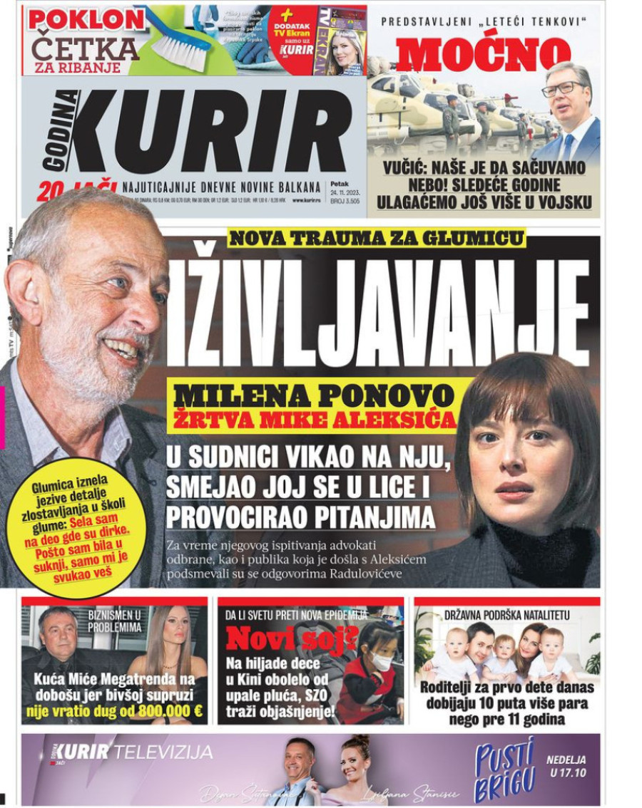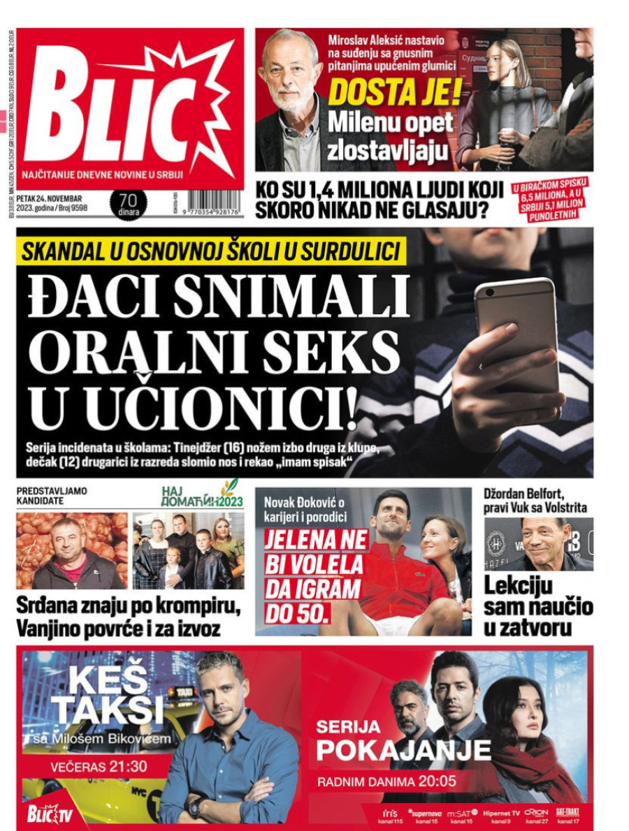 Dnevne novine u Srbiji za petak 24. novembar 2023. godine na naslovnim stranama najavljuju brojne aktuelne društveno-političke teme.