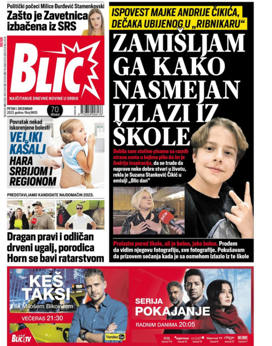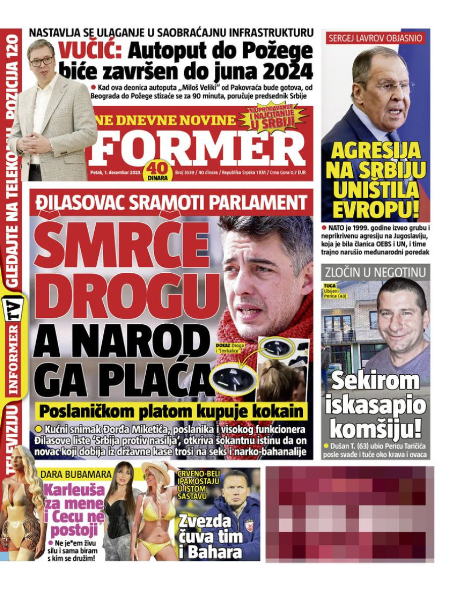 Dnevne novine u Srbiji za petak 1. decembar 2023. godine na naslovnim stranama najavljuju brojne aktuelne društveno-političke teme.